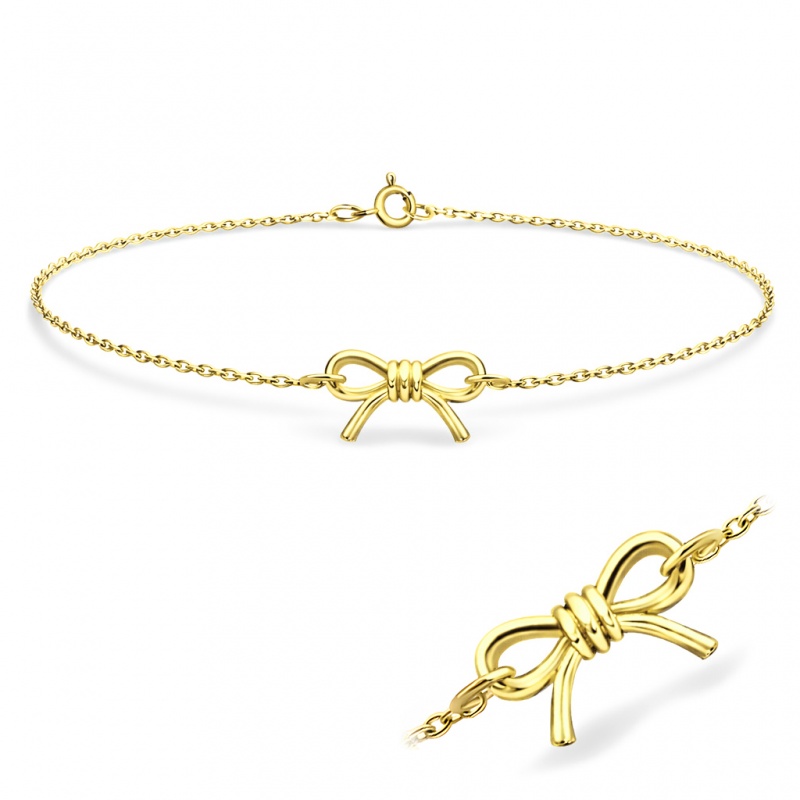 Bransoletka dostępna jest w wariancie srebrnym oraz złotym – z trwałą powłoką e-coating, która nadaje intensywny złoty odcień. Może być noszona samodzielnie lub jako uzupełnienie innych cienkich łańcuszków i bransoletek. Pasuje zarówno do stylizacji formalnych, jak i codziennych, a całość jest też świetnym pomysłem na prezent — kokardka delikatnie kojarzy się z prezentowym akcentem.