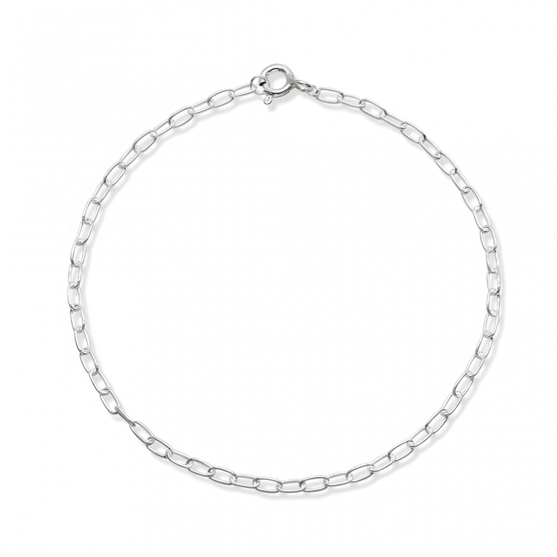 Delikatna bransoletka łańcuszkowa z wydłużonych, owalnych ogniw. Jej znak rozpoznawczy to powtarzalny układ dłuższych oczek – dzięki temu cała uwaga zostaje na splocie. Całość wykonano ze srebra próby 925, więc łańcuszek i elementy zapięcia są z jednego kruszcu. Zapięcie federing to niewielkie, okrągłe zapięcie sprężynowe – odciągasz języczek, podpinasz kółeczko i zwalniasz, a mechanizm wraca na miejsce.