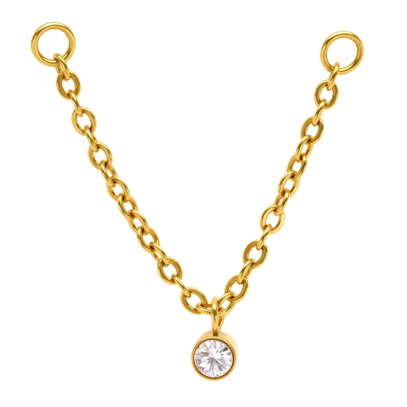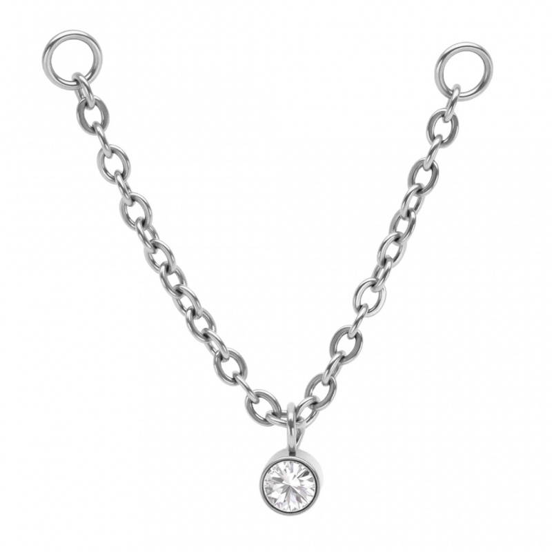 Kurtyna w górę — wchodzi solista. Jeden kryształ bierze na siebie całą arię, a łańcuszek działa jak delikatny akompaniament, który prowadzi go przez scenę przekłuć. Wpinasz kółka w kilka sekund i ustawiasz punkt kulminacyjny tam, gdzie chcesz. Zamiast zbędnej scenografii masz czystą rolę główną; srebro gra chłodnym tonem, złoto uzyskane powłoką PVD dodaje ciepłego tonu. Pierwszy plan bez tremy — od pierwszego aktu po wieczorny bis.