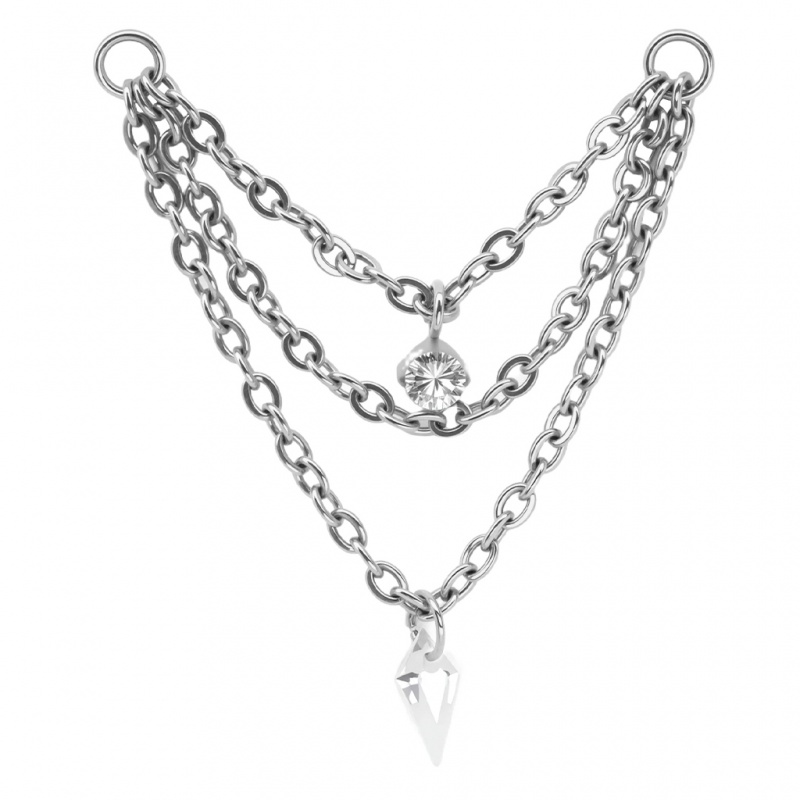 Wykorzystany tytan G23 sprawia, że łańcuszek jest delikatny dla skóry, a jednocześnie wytrzymały i odporny na korozję. Końcówki zakończone kółkami ułatwiają przypięcie, a potrójna forma daje wrażenie, jakbyś dodawał kolejny poziom mocy do swoich ulubionych kolczyków. To jak wejście do tajemniczej groty z potrójnym kryształem mocy – każdy łańcuszek dodaje nową energię i pozwala zejść jeszcze głębiej.