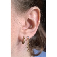| Materiał | Tytan G23 - Ze względu na swoje właściwości medyczne często wykorzystywany jest do produkcji urządzeń medycznych (zastawki serca), czy protez ludzkiego ciała. Z tego względu jest również jednym z najlepszych materiałów do produkcji biżuterii. Zgodnie z dyrektywą unijną (Nickel Directive) kolczyki z tytanu są szczególnie polecane do świeżego przekłucia oraz osobom posiadającym uczulenie na nikiel. |