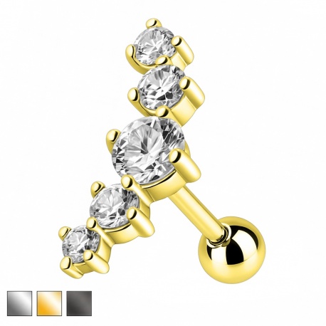 Elegancki kolczyk z liniowo osadzonymi, lśniącymi kamieniami to stylowy akcent do codziennych i wyjątkowych stylizacji. Wykonany z wysokiej jakości stali chirurgicznej, zapewnia trwałość, bezpieczeństwo dla skóry oraz komfort noszenia. Dostępny w trzech wariantach kolorystycznych: srebrnym, złotym oraz czarnym. Kolor złoty i czarny został uzyskany dzięki trwałej powłoce PVD, która zwiększa odporność na ścieranie i pozwala zachować intensywny kolor na długi czas.