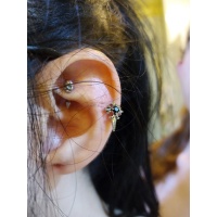 Materiał | Stal chirurgiczna 316L - Najpopularniejszy materiał do wyrobu biżuterii do ciała. Gatunek stali niezwykle odporny na korozję, stosowany w produkcji biżuterii i w medycynie. Mosiądz - Jasny, przypominający złoto mosiądz jest popularny w piercingu ze względu na swój etniczny wygląd. Ten stop mosiądzu wykonany jest z miedzi, cynku i srebra. Nie polecamy mosiądzu na czas gojenia, ponieważ może on uczulać niektóre osoby. |