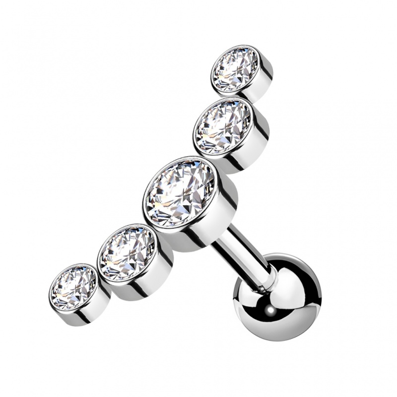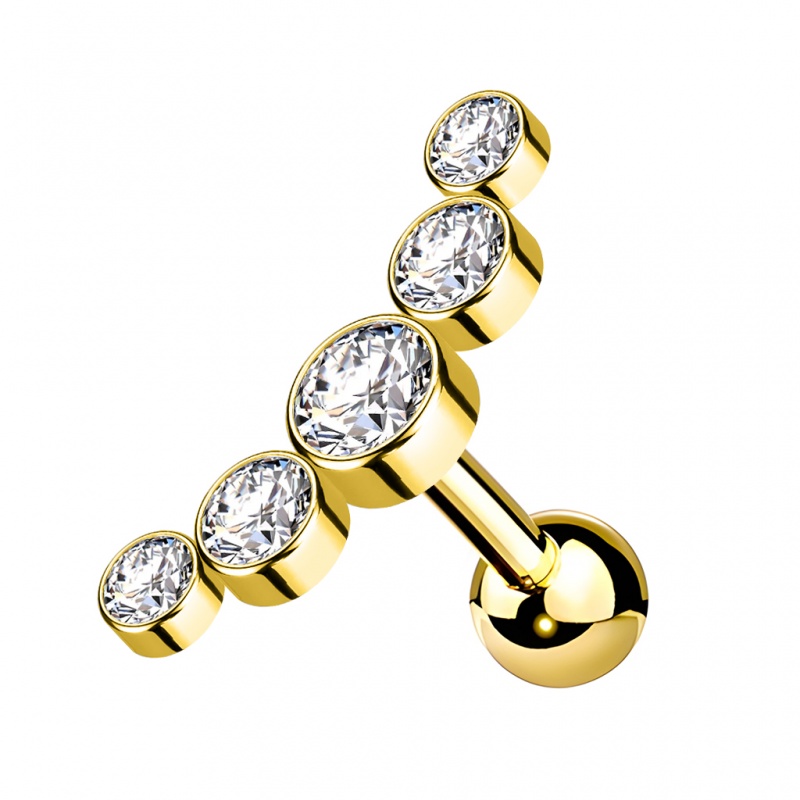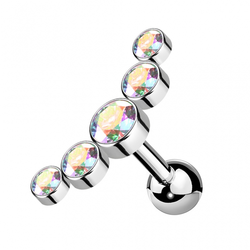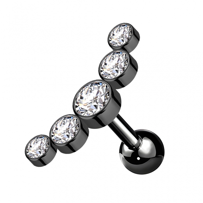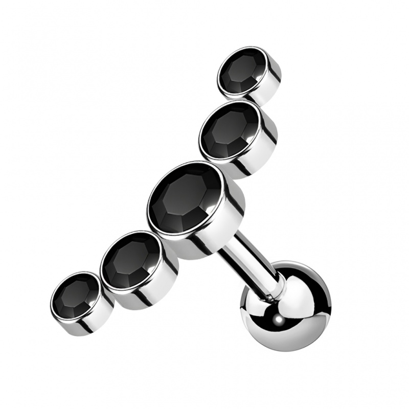 Pręt ma gwint zewnętrzny, a zapięcie to kulka zakręcana: zakładasz i dokręcasz z wyczuciem. Kulka daje dobry chwyt, więc łatwiej ją zakręcić. Srebrny wariant to naturalny kolor stali, a złoty i czarny powstały dzięki trwałej powłoce PVD, która nadaje intensywny kolor. Wybierz kolor kryształków i skompletuj skład, który najlepiej gra z Twoją biżuterią.