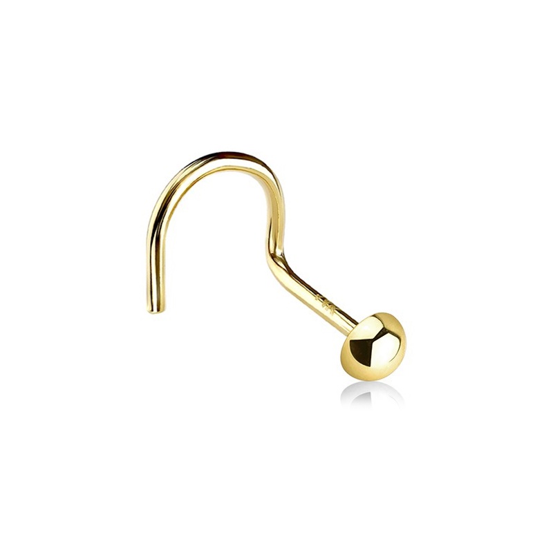 Złoto 14K (próba 585) z ozdobą w formie półkuli to czysty, spokojny detal o miękkim profilu. Gładka, wypolerowana powierzchnia nadaje mu schludny charakter, a łagodne zaokrąglenie wygląda estetycznie w przekłuciu. Złoty kolor nie przytłacza – dopełnia styl i współgra z innymi dodatkami, niezależnie od ich odcienia czy faktury.