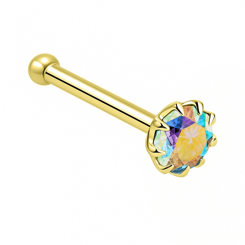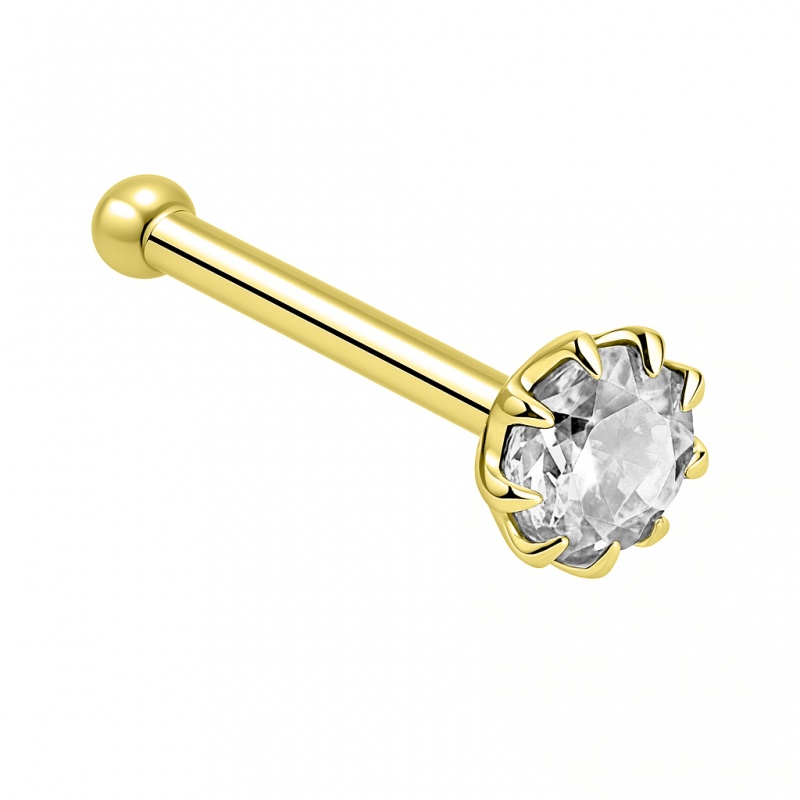 Masz już swoje ulubione kolczyki do uszu i łańcuszek, ale brakuje Ci małego akcentu, który spina cały set? Ten prosty kolczyk do nosa z okrągłym kryształkiem w koronie działa jak ulubiona przypinka – zakładasz go odruchowo i nagle całość wygląda bardziej dopracowanie. Sam w sobie jest subtelny, ale przy innych przekłuciach wchodzi w rolę ulubionej przypinki.