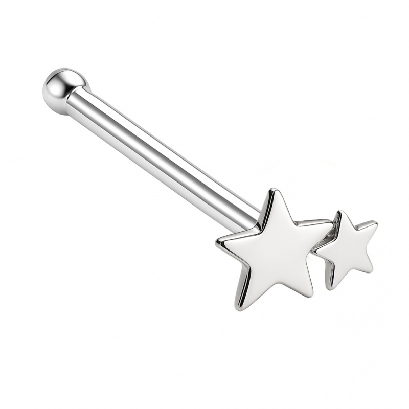 Delikatny prosty kolczyk do nosa z gwiazdkami wygląda jak moment, w którym dwie spadające gwiazdy zamiast zniknąć na niebie zatrzymują się na Twoim nosie. Bazą jest srebro 925, dzięki czemu gwiazdki mają czysty, szlachetny błysk – jak odbite światło na skórze. Prosty, lekki pręt sprawia, że kolczyk jest wygodny w codziennym noszeniu przy wygojonym przekłuciu.