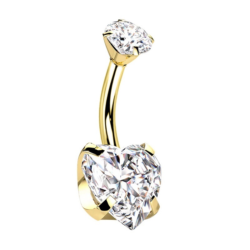W tym kolczyku do pępka dwa kamienie przyciągają spojrzenia od pierwszego ruchu: mniejszy, okrągły kryształ delikatnie połyskuje tuż przy skórze, a większe serce poniżej rozświetla sylwetkę migotliwym blaskiem. Kompozycja pięknie reaguje na światło i ruch, podkreślając letnie stylizacje i kobiecą swobodę. Do wyboru trzy odsłony kryształu – klasyczny bezbarwny, subtelnie opalizujący oraz głęboki rubin – aby idealnie dopasować biżuterię do nastroju i charakteru.
