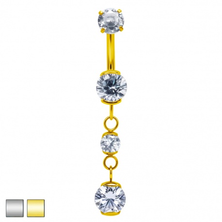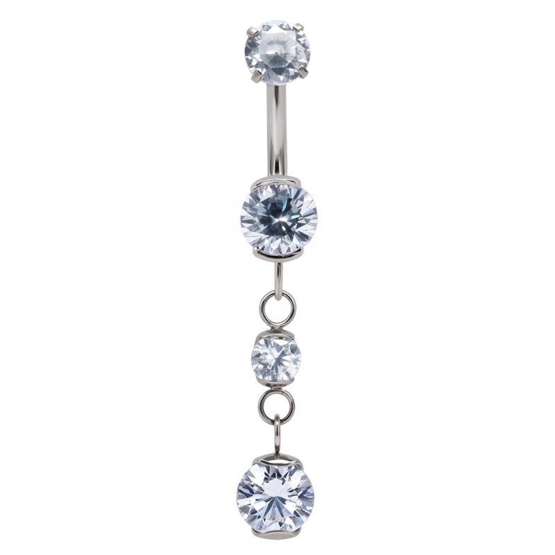 Wymiary ozdoby: nakrętka: Ø 5 mm | cyrkonia na pręcie: Ø 6 mm | cyrkonie na łańcuszku: Ø 4 mm i Ø 6 mm.