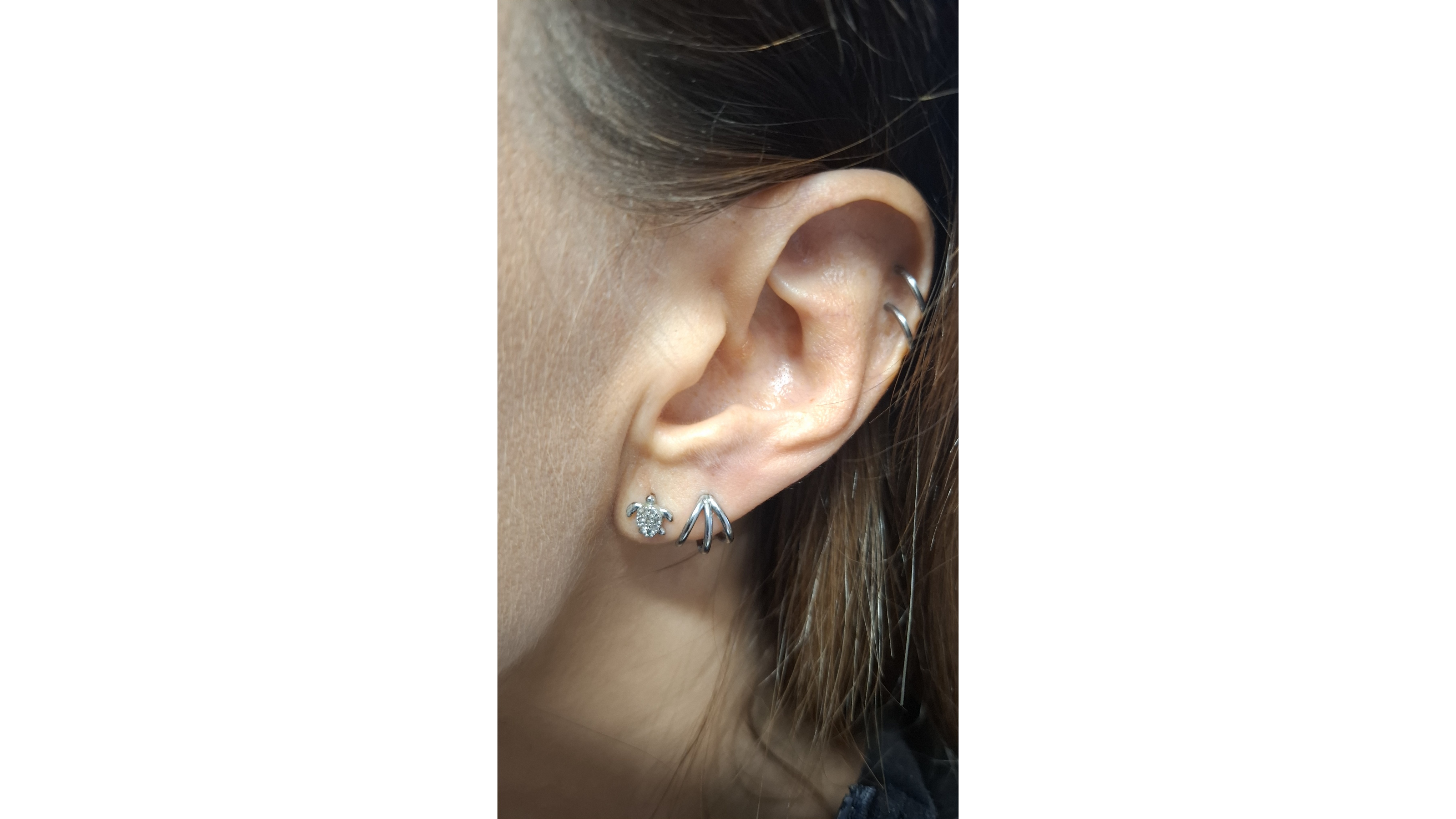 Pierwsze wrażenie? Jak cieniutki pierścień Saturna, który opasa Twoje przekłucie bez przerwy w linii. Wykonany z tytanu G23 zachwyca naturalnym, grafitowo-srebrnym blaskiem, a przy tym waży tak niewiele, że zapomnisz, iż masz go na sobie. Zapięcie segment otwierasz jednym płynnym ruchem – mały wypust wysuwa się, po czym wraca na swoje miejsce, tworząc idealnie jednolitą obręcz. Krawędzie są gładkie jak tafla porannego jeziora: nic nie drapie, nic nie haczy o słuchawki czy czapkę. Ultralekka konstrukcja nie obciąża przekłucia, a sprężystość tytanu chroni ring przed odkształceniem, gdy przypadkiem złapiesz go dłonią.