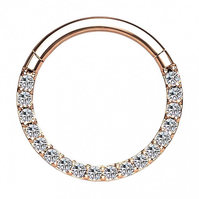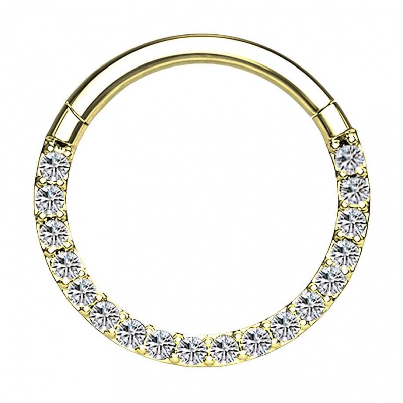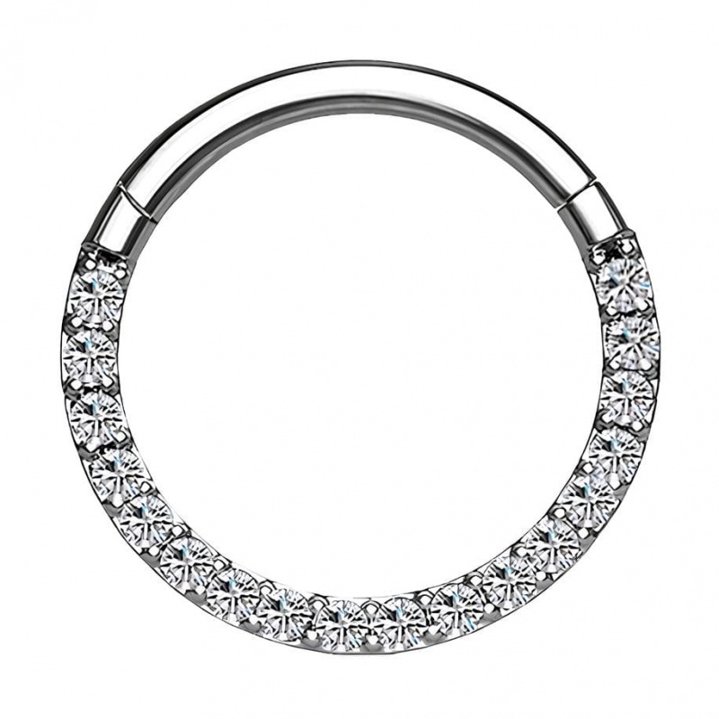 Skoro „pełna dawka”, to bez rozcieńczania – ten clicker jest biżuteryjnym odpowiednikiem mocnego espresso w małej filiżance. Front obręczy tworzy ciąg drobnych kryształków ułożonych w równą linię, jak pasek światełek ustawiony na pełną moc – wzór jest spójny, wyraźny i od razu kojarzy się z dopracowanym wykończeniem. Obręcz powstała z tytanu G23 – materiału, który w piercingu ceni się za to, że jest lekki, solidny i komfortowy przy długim noszeniu, więc możesz traktować ten model jak stałego towarzysza dnia, a nie kolczyk „tylko od święta”.