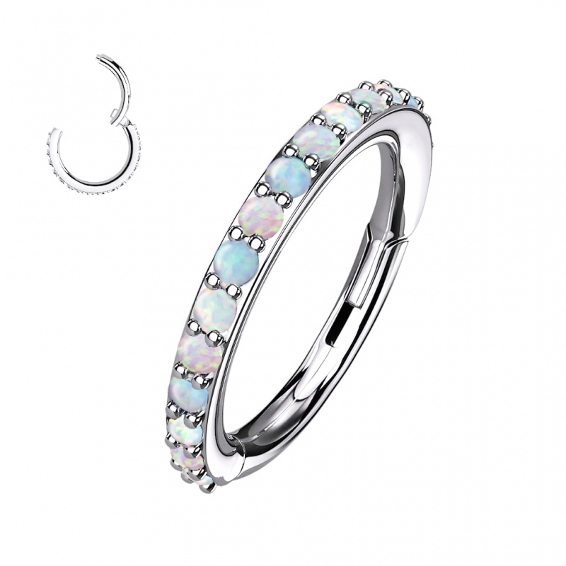 Opale, umiejscowione na obrzeżu kółeczka, będą pięknie wyeksponowane w takich przekłuciach jak helix, conch czy nostril. Kolczyk równie dobrze sprawdzi się w klasycznych przekłuciach uszu (lobe, upper lobe), a także w rooku, tragusie czy nawet w wardze.