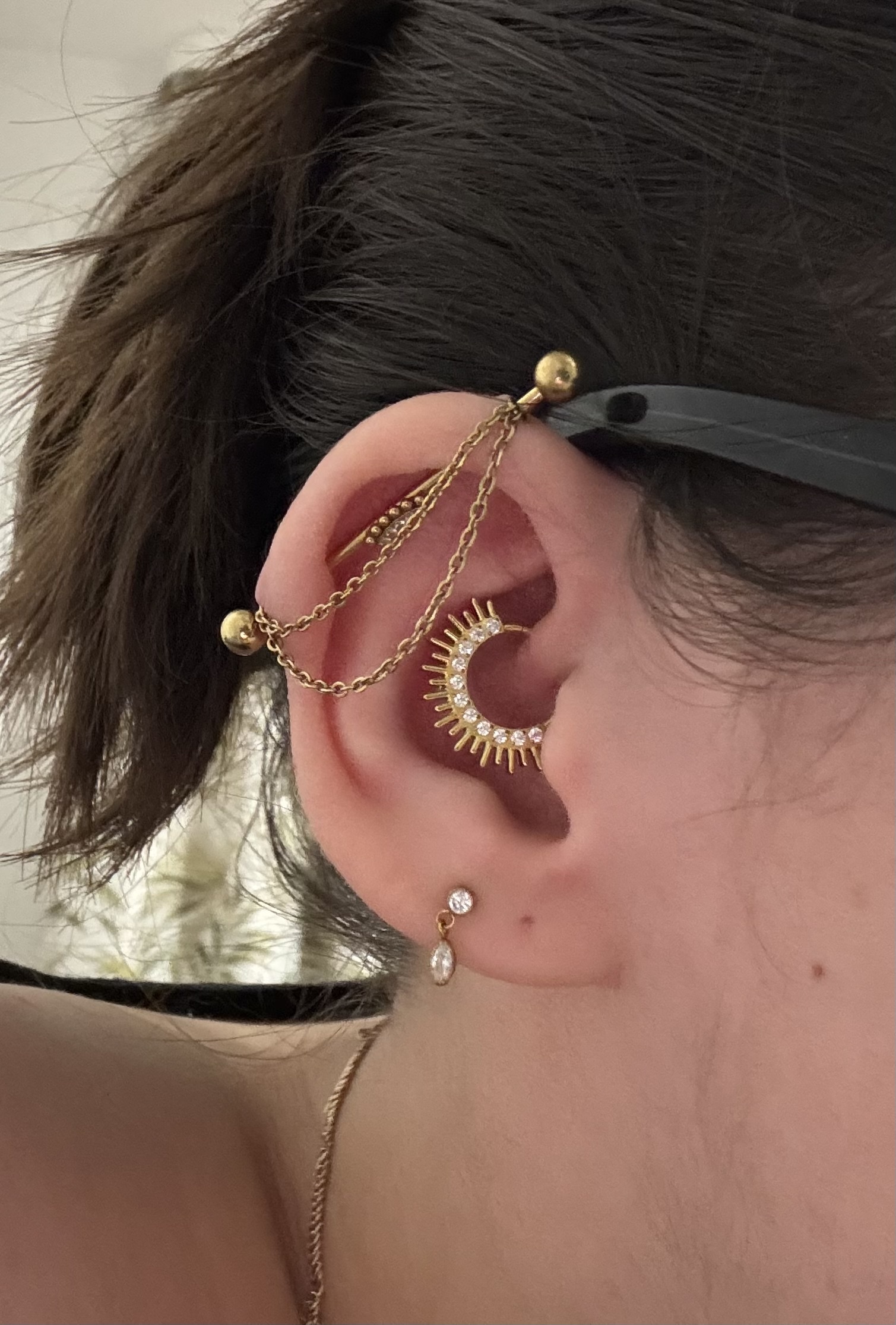Cała oprawa powstała z tytanu G23, cenionego w piercingu za to, że jest lekki, wytrzymały i wygodny w codziennym noszeniu. Kółko dostępne jest w chłodnym srebrze, przypominającym poranne światło, oraz w cieplejszym złocie, gdzie kolor uzyskano dzięki trwałej powłoce PVD. Gładka linia obręczy podkreśla kształt słońca zamiast z nim konkurować, a zapięcie typu clicker daje wyraźne „klik” i zamyka całość w czystym kręgu – jak małe, prywatne słońce, które możesz mieć przy sobie nawet wtedy, gdy za oknem znowu jest kompletnie pochmurnie.