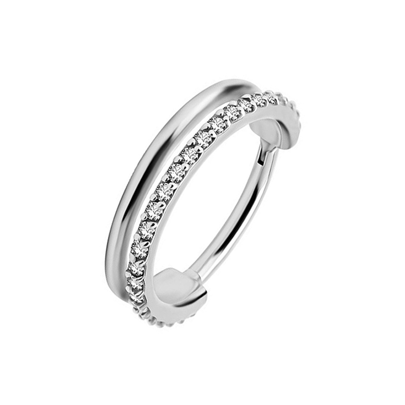 Każda stylizacja ma swoją opowieść, a to kółko jest jej „narratorem”. Pierwszy pierścień to prolog – gładka linia, która porządkuje kształt. Drugi to zwrot akcji: rant drobnych kryształków prowadzi światło po obwodzie jak kolejne rozdziały, od delikatnego połysku w dzień po wyraźniejszy finał wieczorem. Całość wykonana ze stali chirurgicznej 316L, cenionej za wysoką trwałość i odporność na korozję, dzięki czemu blask utrzymuje tempo historii przez długi czas.