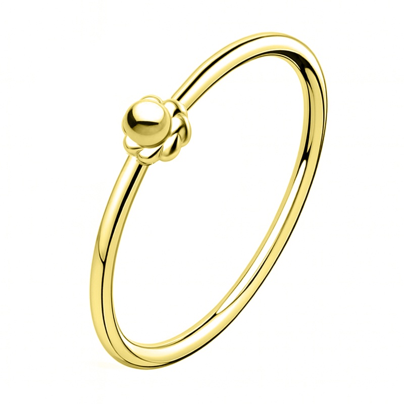Ten kolczyk wygląda jak mały, biżuteryjny status „be kind” przypięty prosto do Twojego piercingu. Gładkie kółko tworzy prostą ramę, a na niej siedzi niewielki kwiatek – subtelny, ale bardzo symboliczny. Wygląda trochę jak rysunek kwiatka stawiany obok ważnych notatek: mały znak, który mówi „tu jest coś dobrego”.
