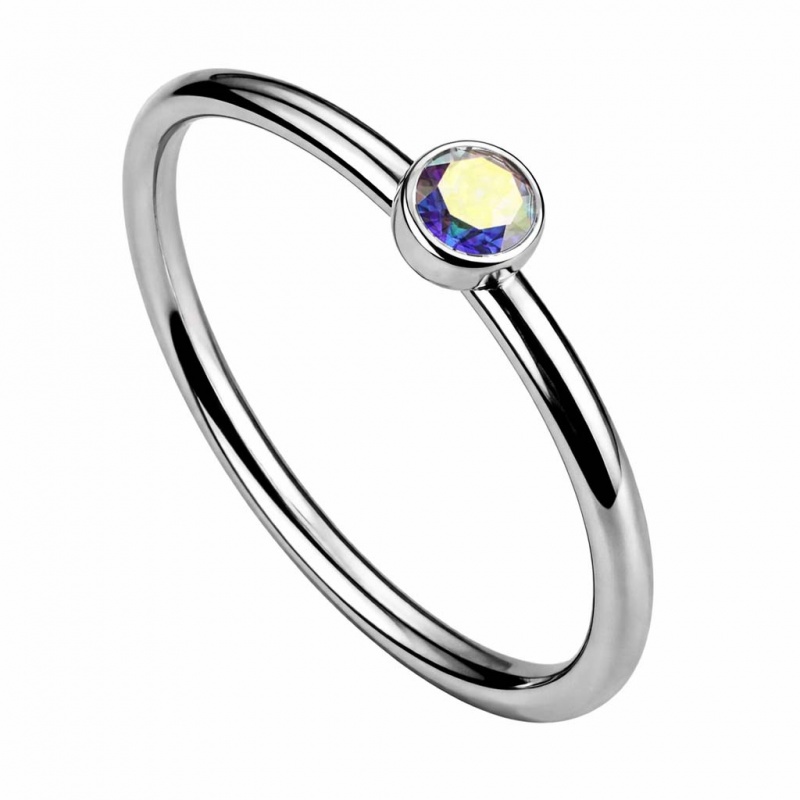 To kółko to biżuteryjny introwertyk, który najlepiej czuje się, gdy cała uwaga skupia się wyłącznie na jego prostej formie. Nie szuka wsparcia w innych dodatkach, bo połączenie gładkiej stali chirurgicznej 316L i jednego, precyzyjnie osadzonego kryształka broni się samo. Zapięcie rozginane sprawia, że obręcz jest płynna i nic nie zakłóca jej symetrii.