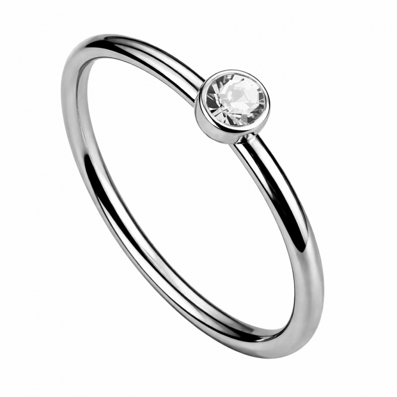 Klasyczna stal w srebrnym wydaniu to tylko początek – dostępne są także wersje w kolorze złotym i czarnym. Te nasycone odcienie uzyskano dzięki powłoce PVD, która jest odporna i nie ulega korozji. Do tego dochodzi szeroki wybór barw samego oczka, od mroźnej bieli po soczyste fiolety czy błękity. To biżuteria dla kogoś, kto docenia delikatne akcenty – tylko lśniący kamień zamknięty w stalowej ramie, który robi dokładnie to, co do niego należy.