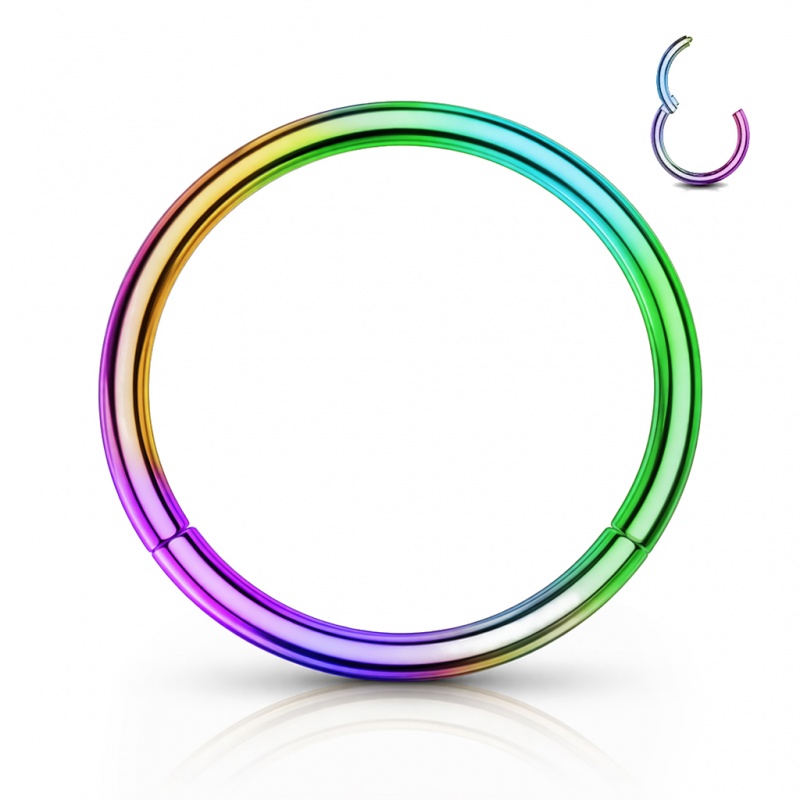 Stalowe kółko clicker sprawdza się w wielu przekłuciach — można je nosić w uchu, wardze, brwi, nosie, a także w miejscach intymnych. Gładka obręcz i wygodne zapięcie na klik sprawiają, że ten model jest wygodny w codziennym noszeniu i szybki do założenia. Do wyboru jest kolor srebrny oraz warianty rose gold, tęczowy, czarny i złoty, więc łatwo dobrać wykończenie do własnych preferencji.