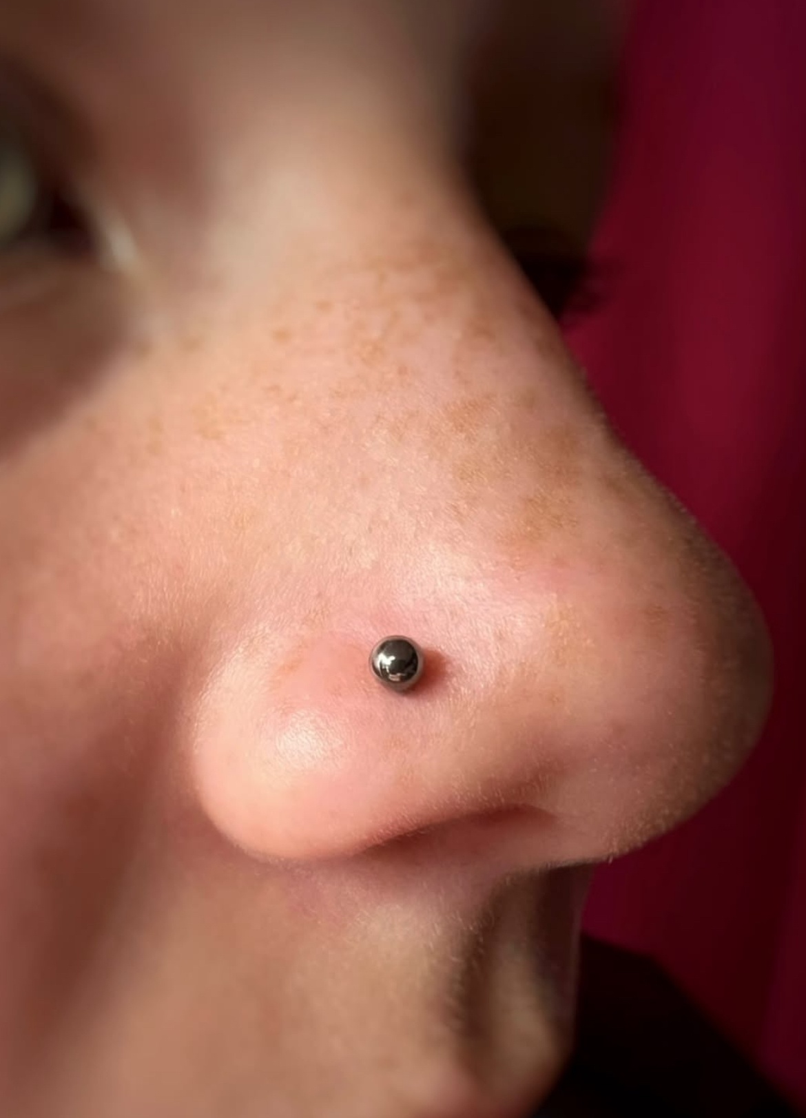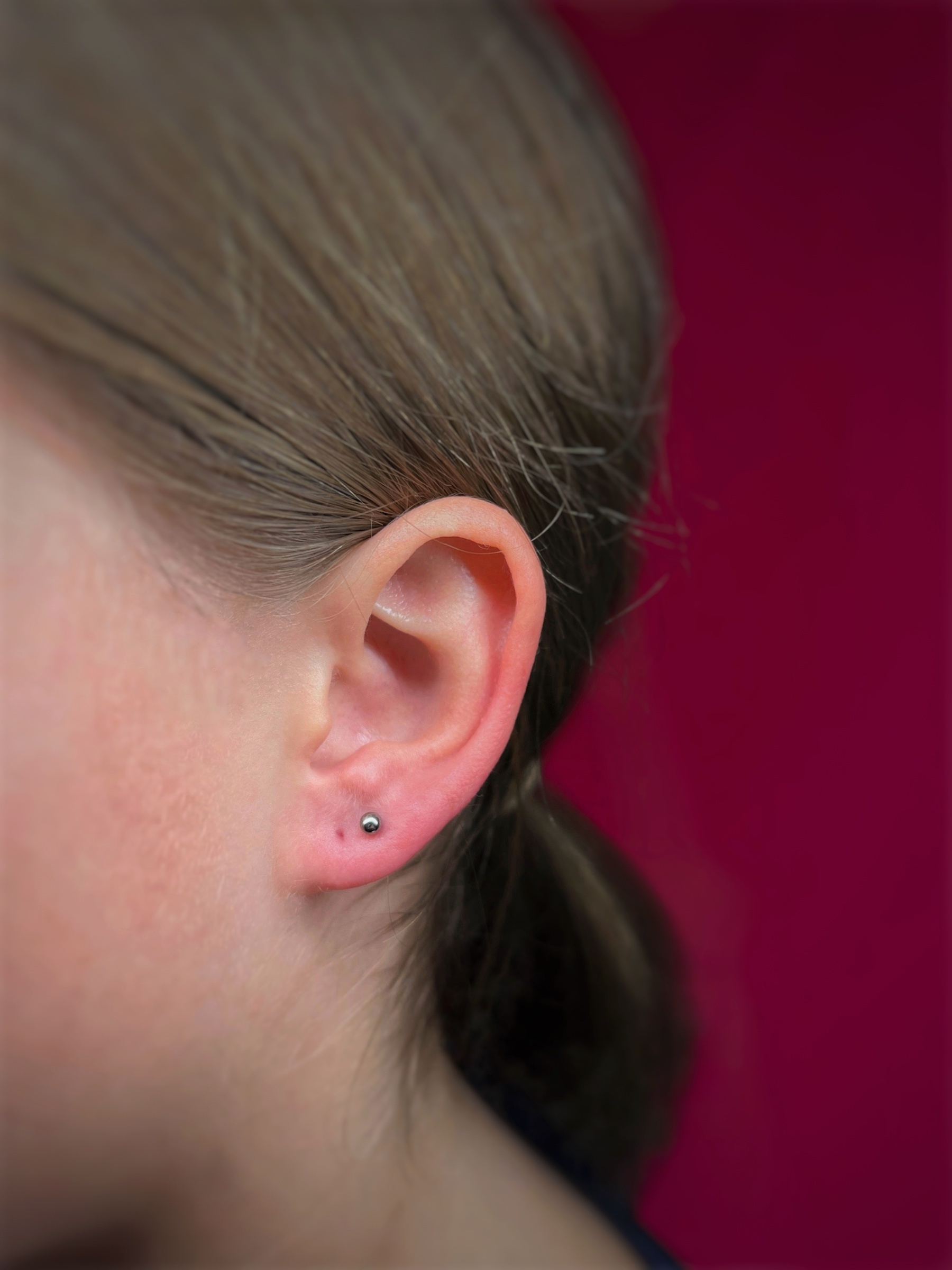 Tytanowy labret z kulką to esencja prostoty i wygody. Wykonany z tytanu G23, materiału gładkiego w dotyku i odpornego na korozję, zapewnia lekkość noszenia oraz trwałość, której możesz zaufać na lata. Naturalny odcień tytanu odbija światło jak tafla spokojnego jeziora, delikatnie podkreślając kontury twarzy. Wewnętrzny gwint pewnie przytrzymuje kulkę, a płaski dysk od wewnętrznej strony stabilizuje kolczyk, trzymając go pewnie jak elastyczna opaska w słuchawkach – nie uwiera ani nie przeszkadza podczas aktywności.