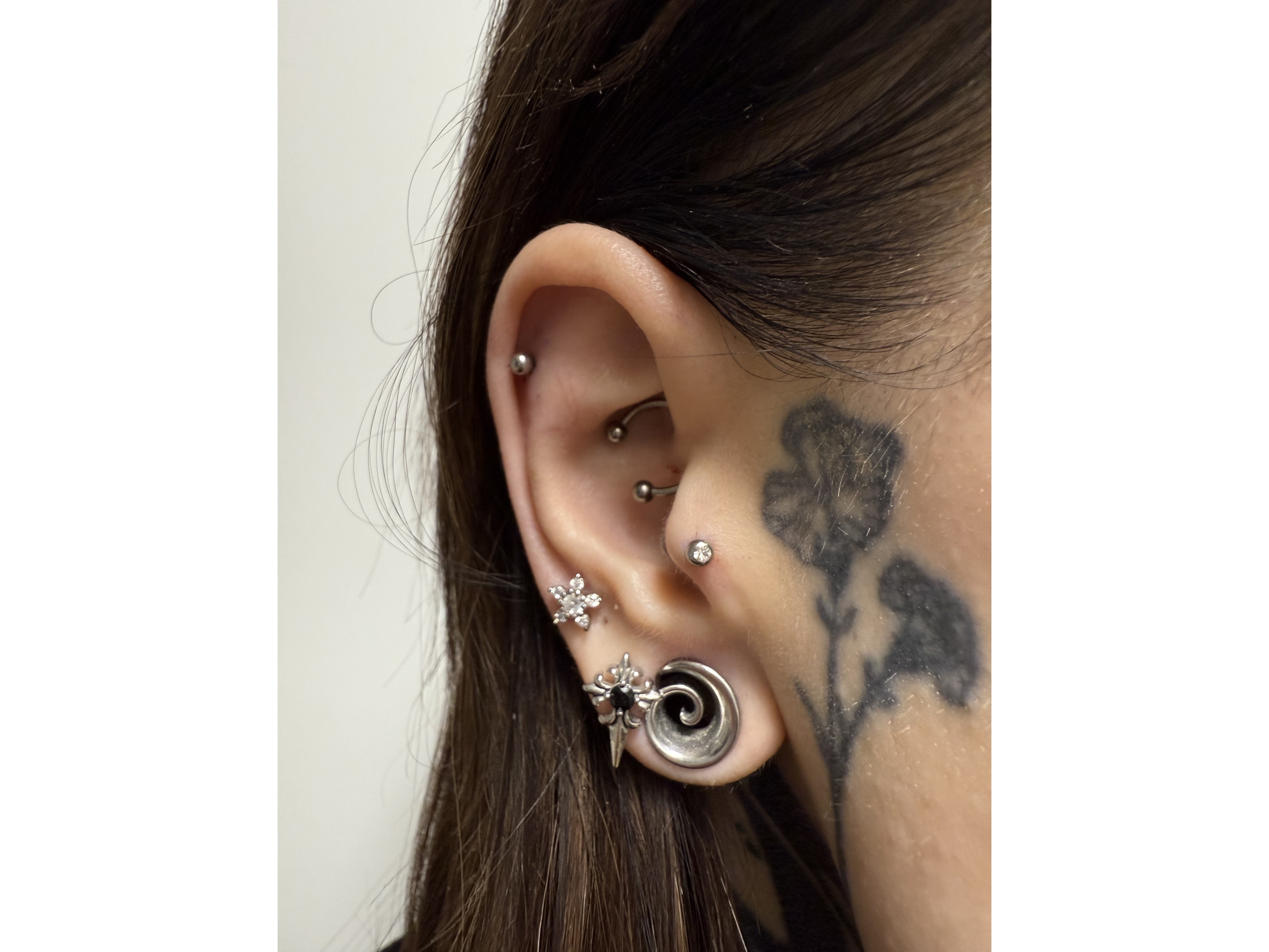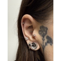 | Materiał | Stal chirurgiczna 316L - Najpopularniejszy materiał do wyrobu biżuterii do ciała. Gatunek stali niezwykle odporny na korozję, stosowany w produkcji biżuterii i w medycynie. Mosiądz - Jasny, przypominający złoto mosiądz jest popularny w piercingu ze względu na swój etniczny wygląd. Ten stop mosiądzu wykonany jest z miedzi, cynku i srebra. Nie polecamy mosiądzu na czas gojenia, ponieważ może on uczulać niektóre osoby. |