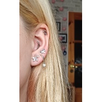 | Materiał | Stal chirurgiczna 316L - Najpopularniejszy materiał do wyrobu biżuterii do ciała. Gatunek stali niezwykle odporny na korozję, stosowany w produkcji biżuterii i w medycynie. Mosiądz - Jasny, przypominający złoto mosiądz jest popularny w piercingu ze względu na swój etniczny wygląd. Ten stop mosiądzu wykonany jest z miedzi, cynku i srebra. Nie polecamy mosiądzu na czas gojenia, ponieważ może on uczulać niektóre osoby. |