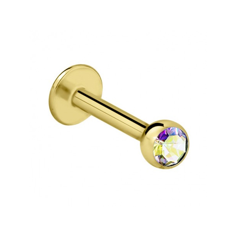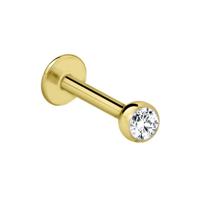 Tytan G23 to baza, której możesz zaufać – jest lekki, trwały i zawiera jedynie śladowe ilości niklu, więc ryzyko podrażnień pozostaje minimalne. Całość pokrywa złota powłoka nałożona metodą PVD, dzięki czemu kolor zachowuje głębię i połysk nawet po setkach zmian stylówek. Na czubku czeka kulka z kryształkiem, łapiąca światło jak flesz aparatu w zatłoczonym klubie – krótki błysk, a efekt zapada w pamięć.