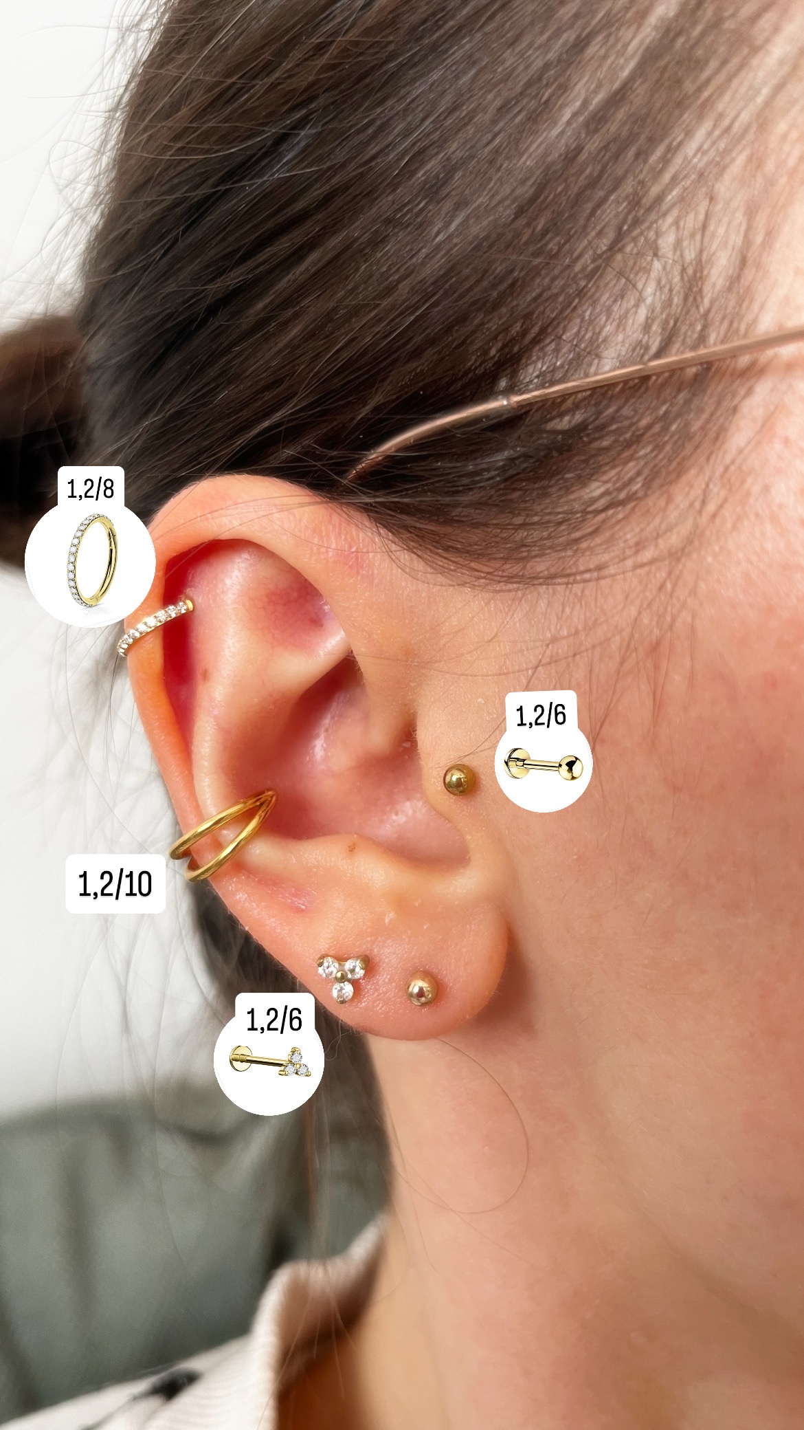 | Do przekłucia | center labret, conch, helix, lobe, lowbret, medusa, monroe, nostril, high nostril, tragus |