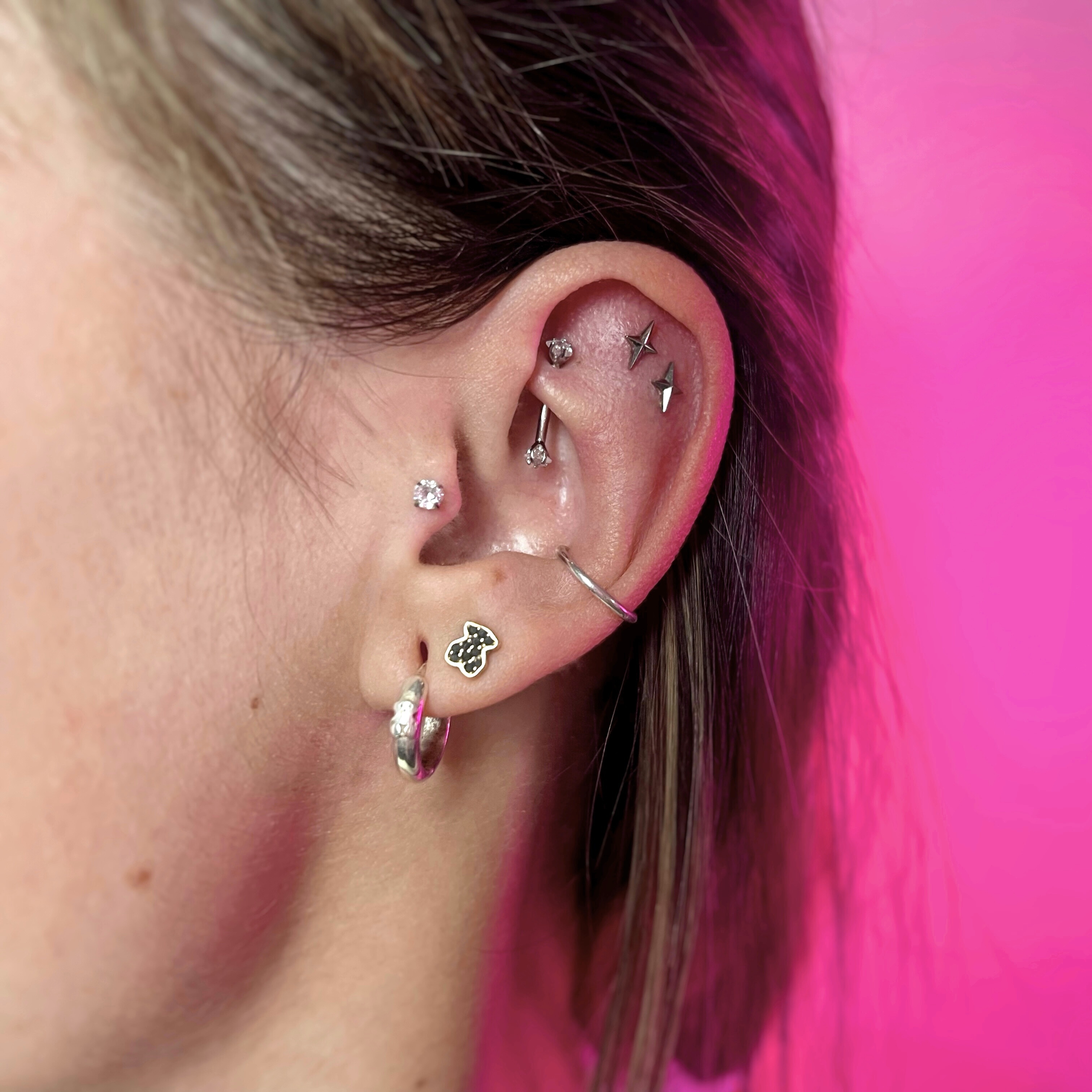 Kolczyk powstał z tytanu G23 – metalu słynącego z odporności na korozję i wyjątkowej łagodności dla skóry. Materiał zachowuje swój kolor, a dzięki doskonałej tolerancji skórnej jest chętnie wybierany na pierwsze przekłucie. Gwint wewnętrzny chroni kanał przekłucia przed mikro-otarciami, więc zakładanie kolczyka jest prostsze, a gojenie spokojniejsze.