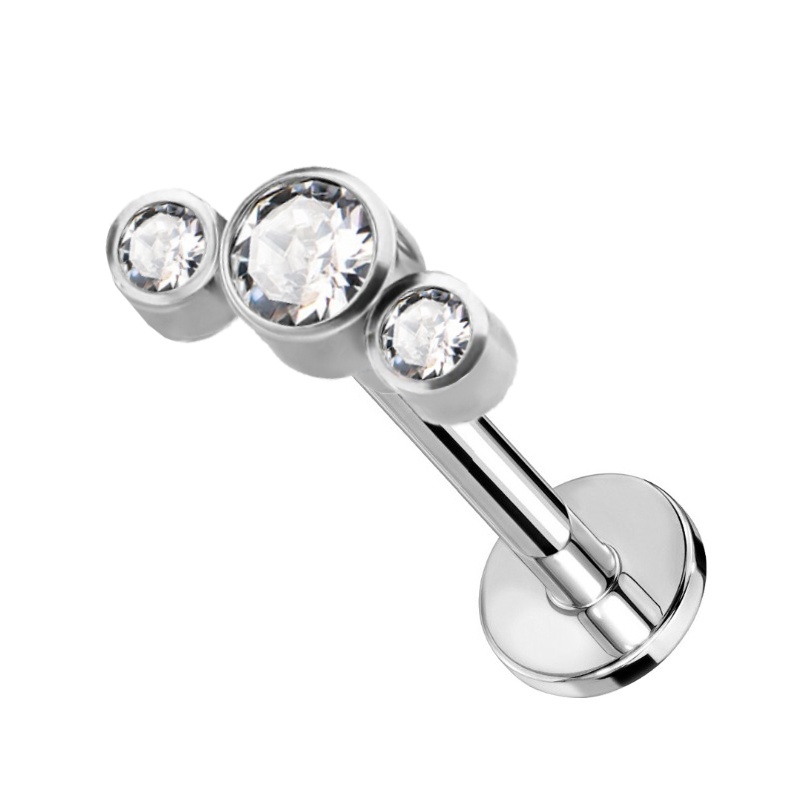 Minimalistyczny, ale z charakterem: czysta estetyka, zero przypadków. Ten labret łączy trzy kryształki w układ, który daje wrażenie „konfetti światła” – drobne refleksy zmieniają się przy każdym ruchu, jak rozbłysk pryzmatu w kieszonkowej wersji. Dzięki temu kolczyk wygląda świeżo i nowocześnie, pasuje do T-shirtu, bluzy i wieczornego fitu.