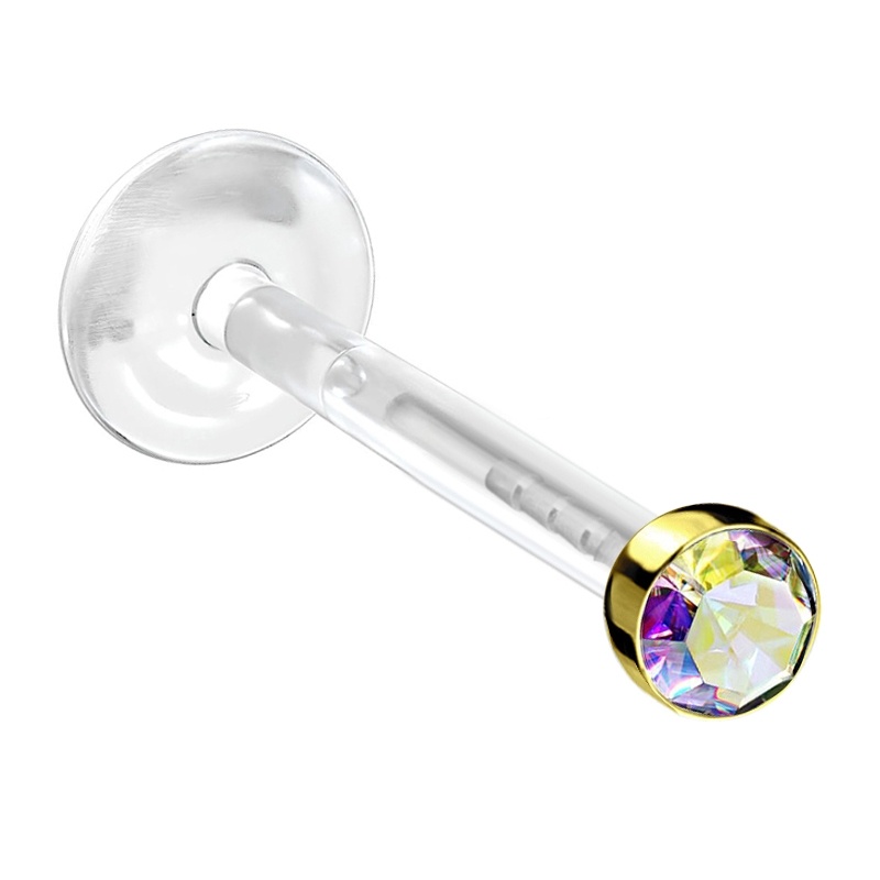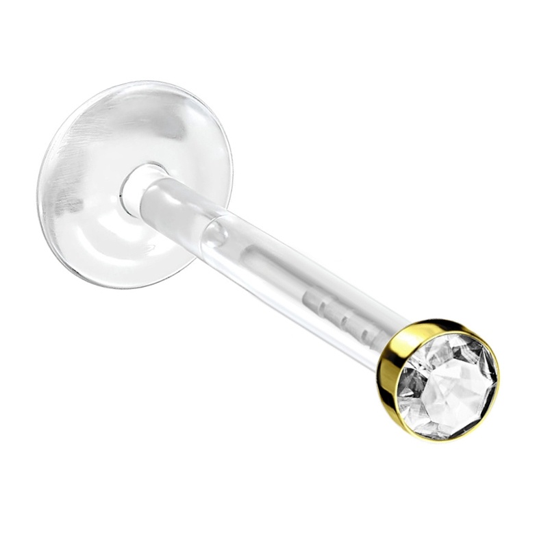 | Materiał | Stal chirurgiczna 316L - Najpopularniejszy materiał do wyrobu biżuterii do ciała. Gatunek stali niezwykle odporny na korozję, stosowany w produkcji biżuterii i w medycynie. Bioplast® - Jeden z najlepszych materiałów dla początkowych procesów gojenia (biokompatybilny polimer). Zmniejsza ryzyko wystąpienia alergii (nie zawiera niklu). Występuje w kilku kolorach, jest nieco mniej elastyczny od PTFE. Może być poddany procesowi sterylizacji w autoklawie (121 stopni C). Kolczyk z bioplastu można przyciąć na odpowiednią długość i nagwintować metalowymi kulkami. |