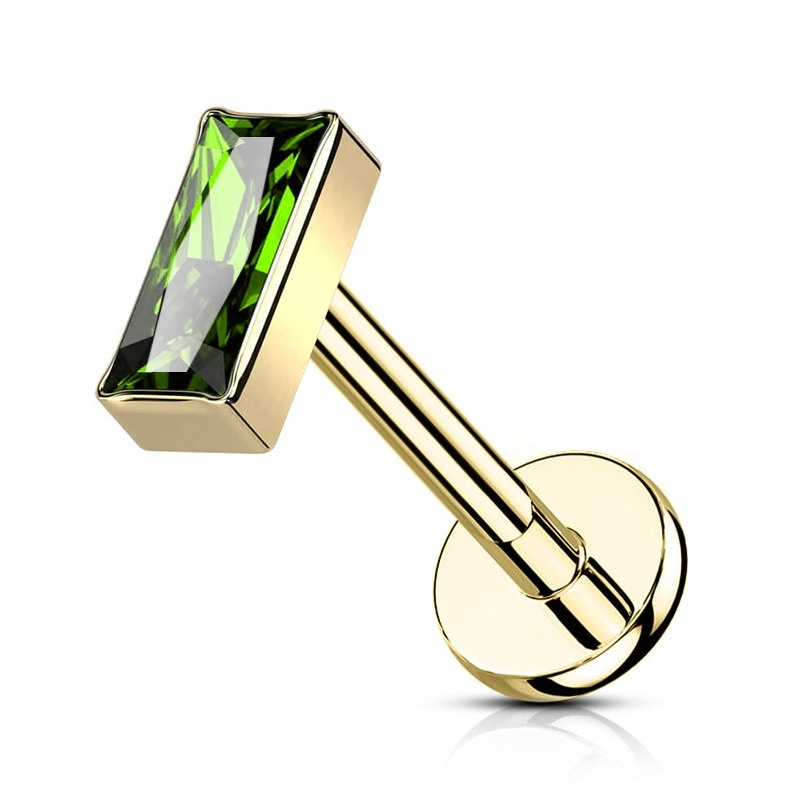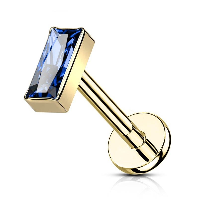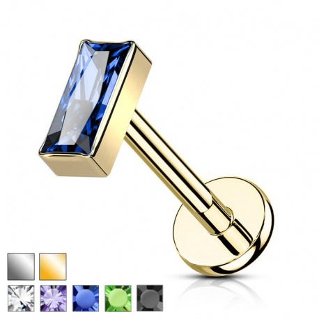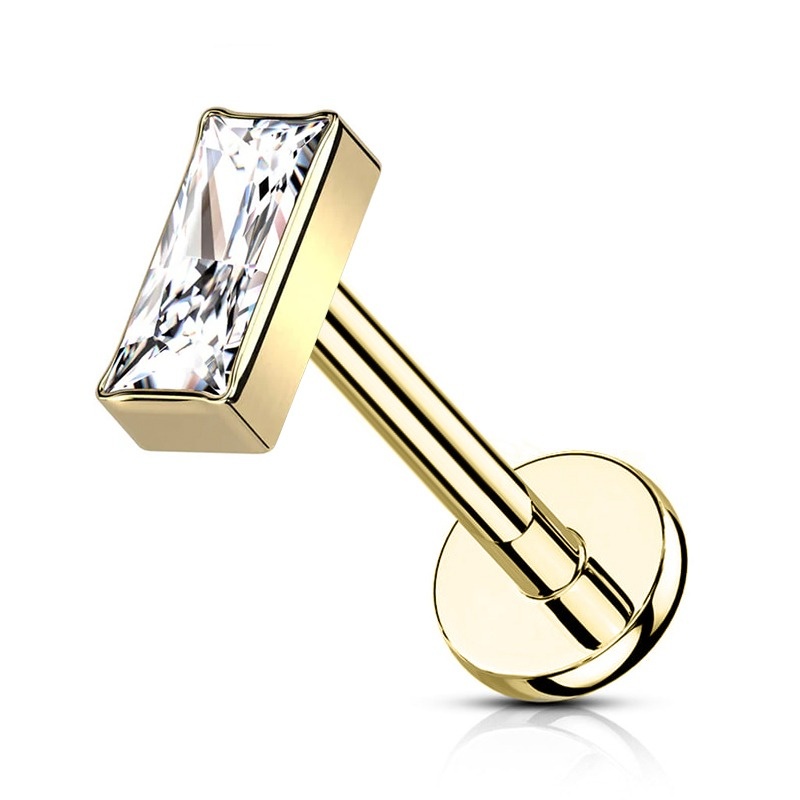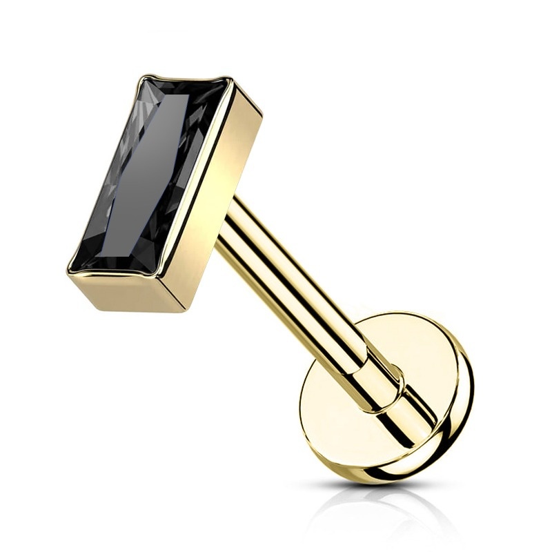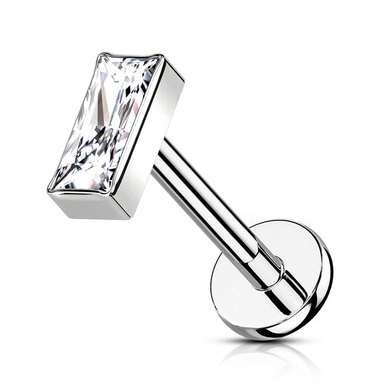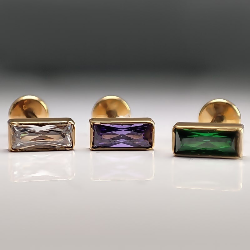 W Tetrisie są te momenty, gdy pojawia się właściwy prostokąt i nagle cała układanka robi się oczywista. Ten labret działa podobnie: prostokątny kryształek daje wyraźny akcent, a dzięki grubszemu, 2-mm mocowaniu jest widoczny na uchu. Bazą jest tytan G23 – lekki, odporny na korozję i delikatny dla skóry. A gwint wewnętrzny to ten „idealnie dopasowany element” w układance: zakładasz go gładko, wszystko łapie swoje miejsce i trzyma się pewnie przez cały dzień.