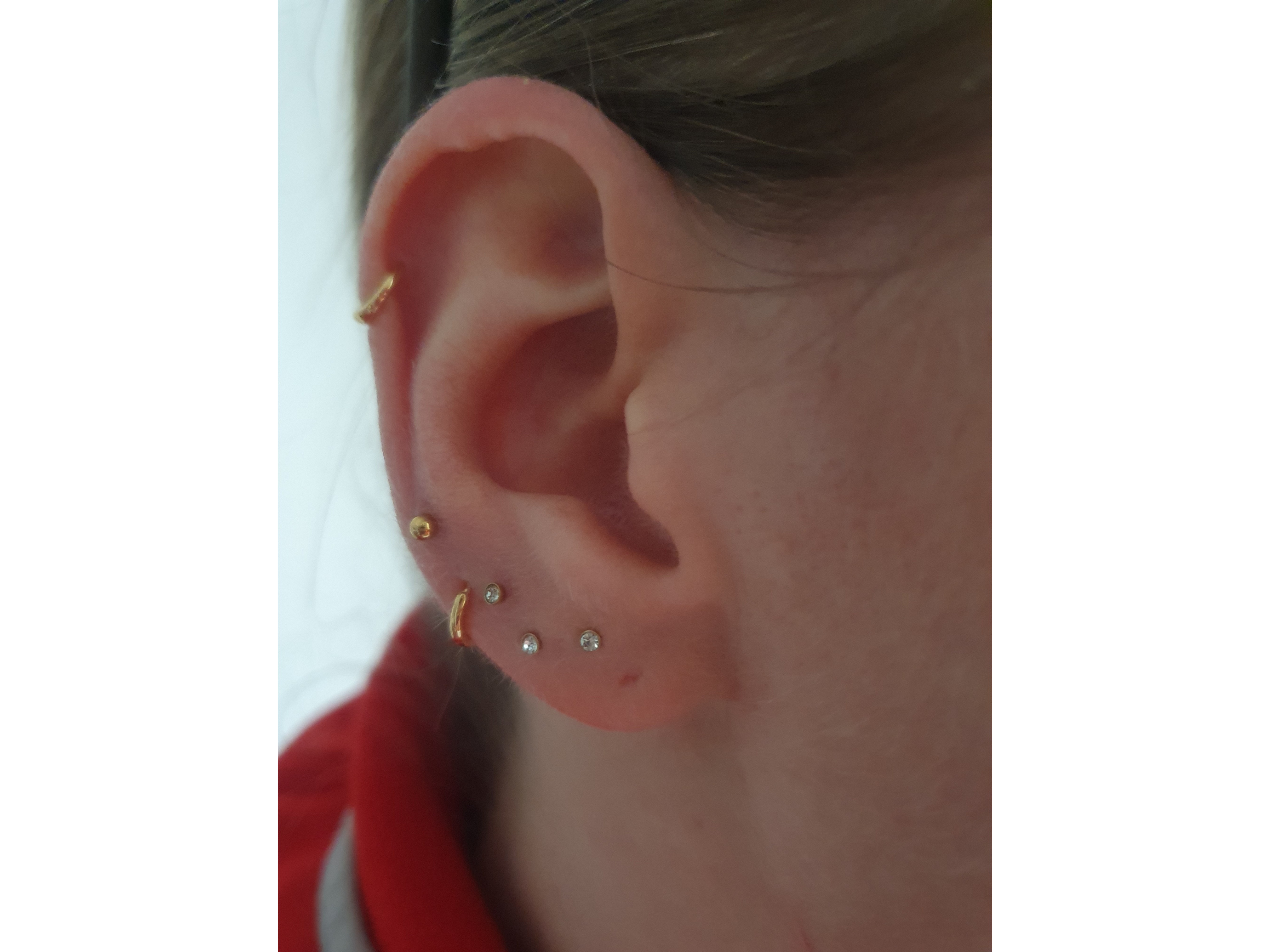 Polecam kolczyki z wewnętrznymi gwintami, nic się nie odkręca, noszę do medusy, jest piękny i drobniutki