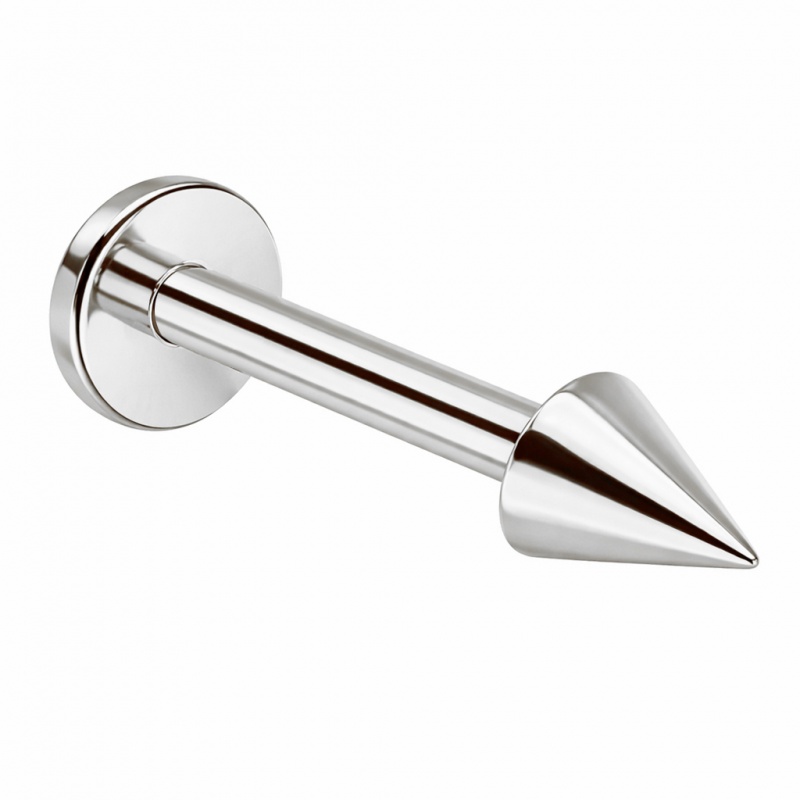 Tytanowa geometria w wersji ze stożkiem to czysta forma: płaski dysk, prosty pręt i stożek, który domyka całość jak grot ołówka na końcu równej kreski. Wykorzystany tytan G23 to lekkość, trwałość i komfort noszenia — materiał, który ze względu na swoje właściwości bywa używany także w medycynie, a tytanowe kolczyki są szczególnie polecane do świeżych przekłuć oraz osobom z uczuleniem na nikiel.