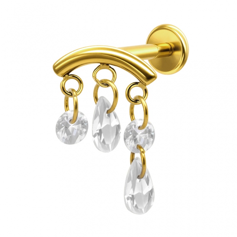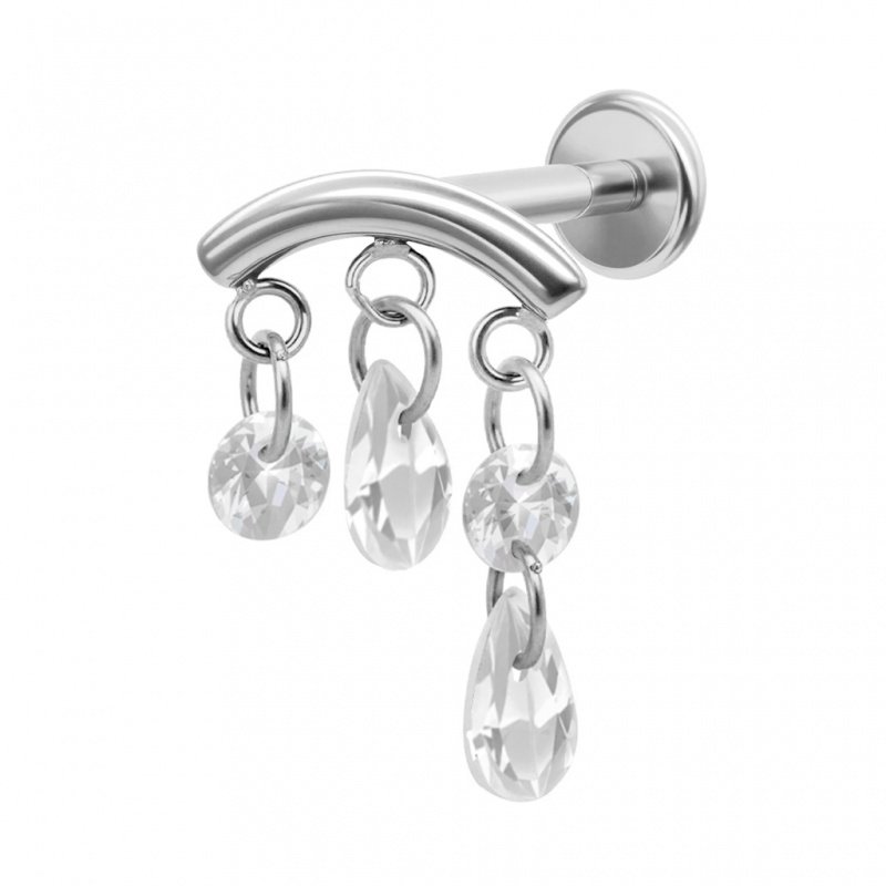 Ten labret to nie jest zwykły kolczyk, to małe dzieło sztuki. Pod delikatnym, wygiętym łukiem kryje się prawdziwa kaskada blasku – wiszące cyrkonie w dwóch kształtach. Wygląda to trochę jak łapacz snów, tylko bez piórek. Całość łączy wyjątkową estetykę z techniczną perfekcją, gdzie przemyślany gwint wewnętrzny zapewnia gładką wymianę ozdoby, a wykorzystany tytan G23 pozostaje niezwykle delikatny dla skóry, oferując przy tym solidną trwałość, która pozwala cieszyć się nim przez lata.