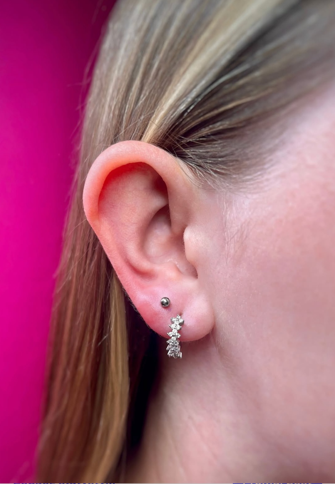 | Materiał | Tytan G23 - Ze względu na swoje właściwości medyczne często wykorzystywany jest do produkcji urządzeń medycznych (zastawki serca), czy protez ludzkiego ciała. Z tego względu jest również jednym z najlepszych materiałów do produkcji biżuterii. Zgodnie z dyrektywą unijną (Nickel Directive) kolczyki z tytanu są szczególnie polecane do świeżego przekłucia oraz osobom posiadającym uczulenie na nikiel. |