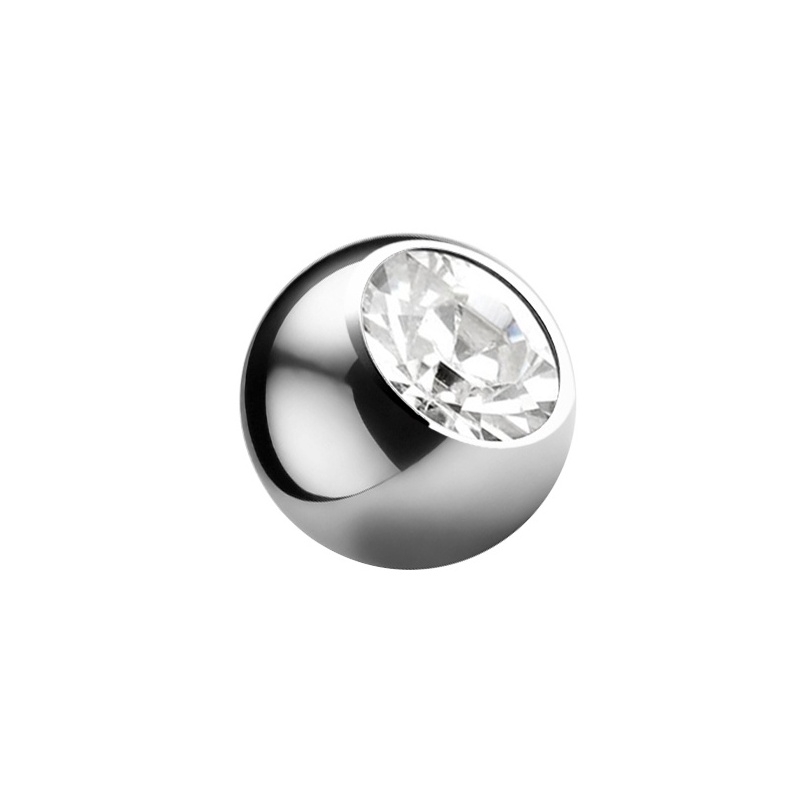 Nie musisz zmieniać całego kolczyka, żeby wyglądał świeżo — czasem wystarczy końcówka. Ta kulka z kryształkiem to mały element, który wybija się na pierwszy rzut oka — zwłaszcza gdy lubisz prostą biżuterię, ale chcesz jednego mocniejszego punktu. Wykonana z tytanu G23 jest lekka i odporna na korozję, więc nadaje się do codziennego noszenia. Pasuje do prętów z gwintem zewnętrznym (warianty pod 1,2 i 1,6) i odnajdzie się w piercingu ucha oraz twarzy. Do wyboru masz kolor bazy: srebrny lub złoty (PVD) oraz odcień kryształu: kryształowy, czarny, niebieski, opalizujący, różowy albo zielony. Kryształ jest osadzony równo, dzięki czemu wygląda estetycznie i nie haczy o ubrania.