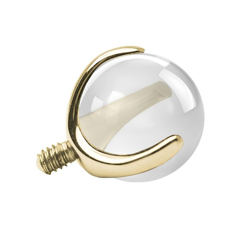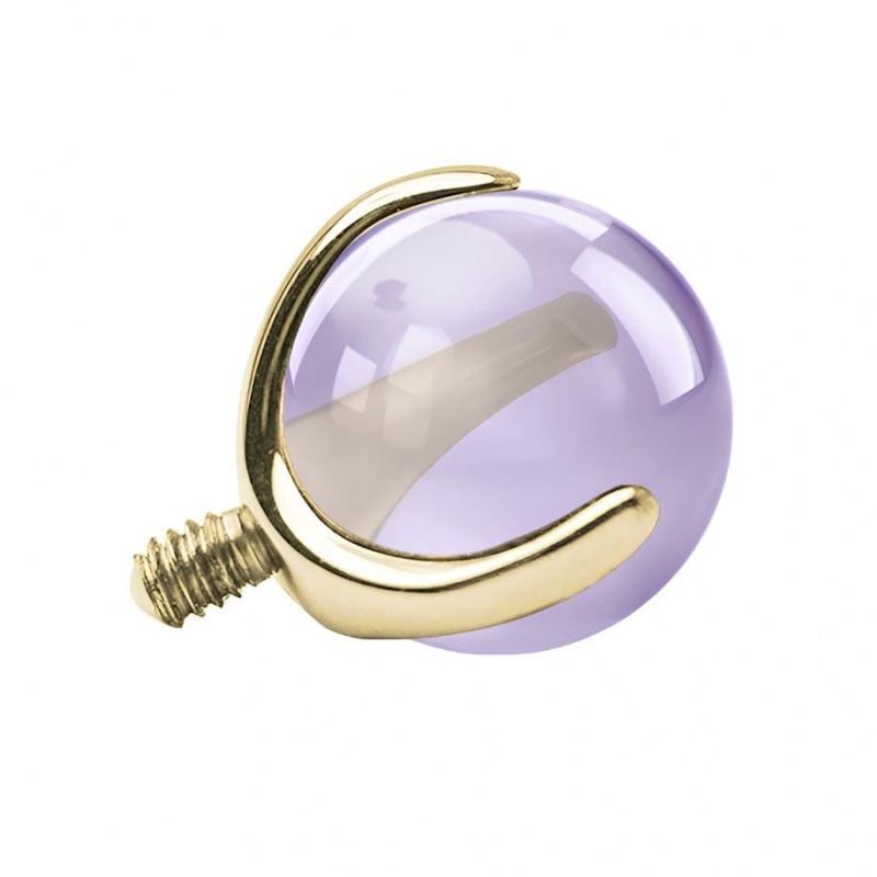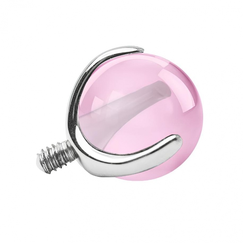 Jak mydlana bańka potrafi w jednej chwili złapać perłowy refleks, tak ta półprzeźroczysta kulka zmienia swój wygląd zależnie od światła i kąta patrzenia. Do wyboru masz trzy delikatne odcienie: przeźroczysty, różowy i fioletowy – w ostrym świetle mogą wydawać się bardziej nasycone, a w miękkim robią subtelną, „bańkową” poświatę. Kulka jest osadzona w oprawie z tytanu G23 (srebrnej lub złotej uzyskanej dzięki powłoce PVD), materiału cenionego za świetną tolerancję przez wrażliwą skórę i odporność na korozję.
