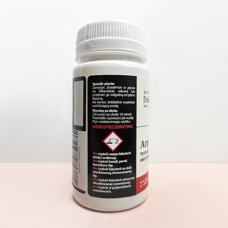 Profesjonalny płyn do czyszczenia biżuterii. Formuła bez środków ściernych zapewnia skuteczne czyszczenie i ochronę delikatnych powierzchni. Płyn Argentum nadaje wysoki połysk i świeżość, opóźniając proces ponownego ciemnienia. Doskonały do miejsc trudno dostępnych, gdzie tradycyjne środki czyszczące nie mogą być używane.