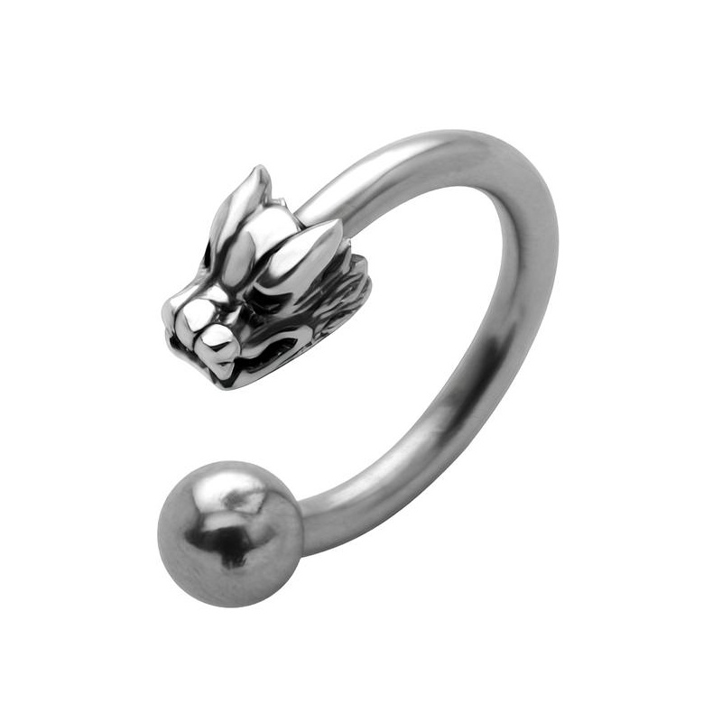 Srebrzysty smok pasuje do streetwearu i elegancji, wprowadzając nutę legendy do codzienności. Solo gra pierwsze skrzypce, a w duecie z prostą stalą tworzy wyrazisty kontrast. Mały detal, który natychmiast zmienia historię Twojego piercingu.