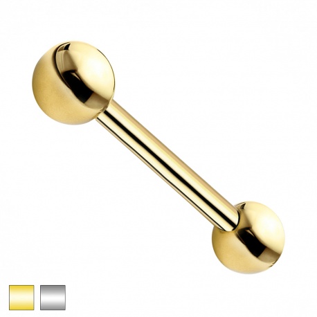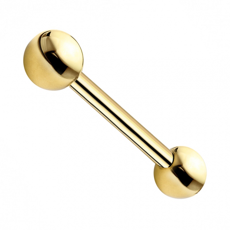 Złoty odcień uzyskano metodą PVD, dzięki czemu kolor wygląda równo i nowocześnie, a sama biżuteria zachowuje neutralną, tytanową bazę. Ten model świetnie sprawdza się w piercingu języka i sutków, a także w przekłuciach intymnych; można go stosować zarówno przy świeżych, jak i zagojonych miejscach. Materiał i konstrukcja to inwestycja w długie, bezproblemowe użytkowanie oraz wysoki komfort.