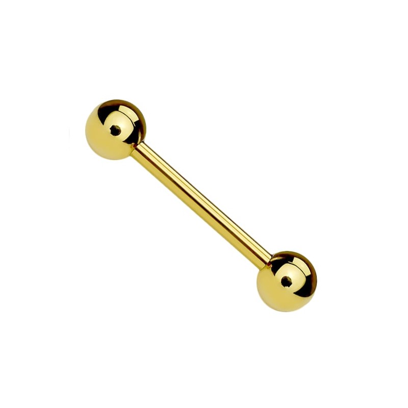 Sztanga zachwyca ciepłym blaskiem i lekkością, którą zapewnia tytan G23. Subtelny odcień powstał dzięki powłoce PVD, trwałej i odpornej na ścieranie, więc kolor nie zniknie po treningu czy w słonej wodzie. Gładki pręt z gwintem zewnętrznym i wyprofilowane kulki ułatwiają szybkie zakładanie oraz komfort w codziennym noszeniu.