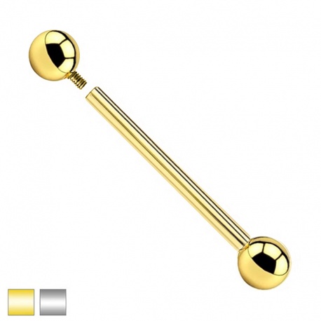 Pręt z gwintem wewnętrznym po obu stronach zakończony jest kulkami, więc przez przekłucie przechodzi gładka sztanga. To rozwiązanie ogranicza ryzyko podrażnienia kanału przekłucia. Sam kolczyk pozostaje lekki i wytrzymały, odpowiedni do długiego noszenia – możesz traktować srebrną wersję jako codzienną podstawę, a złoty wariant jako subtelny akcent.