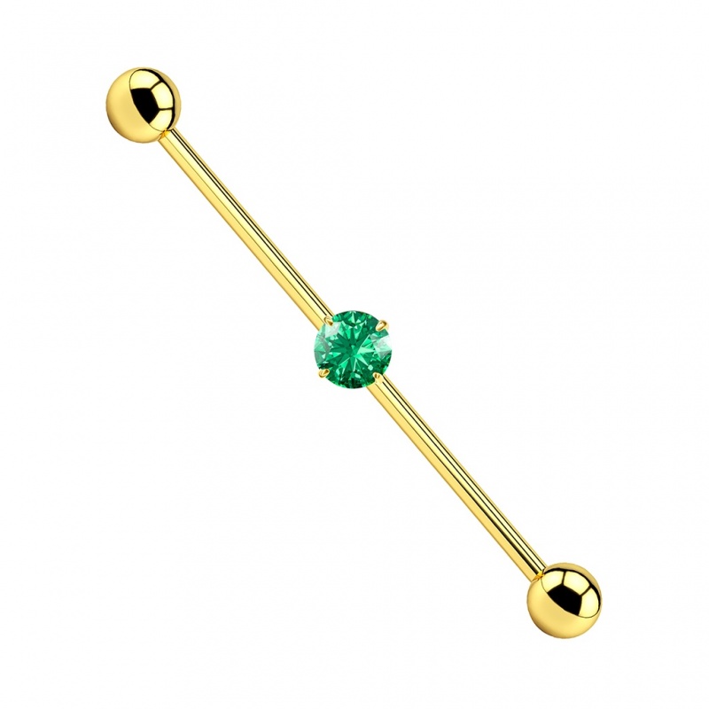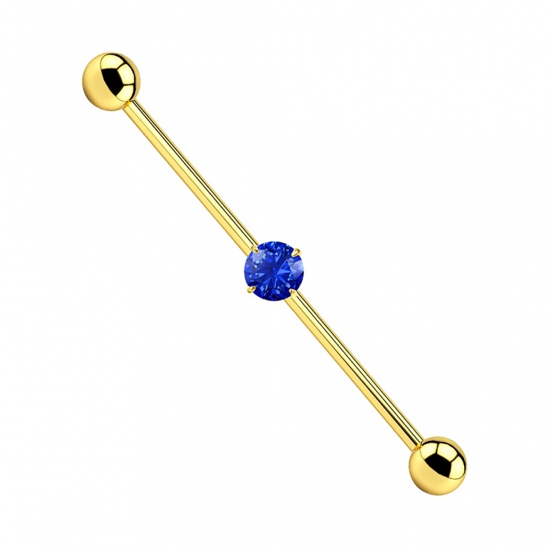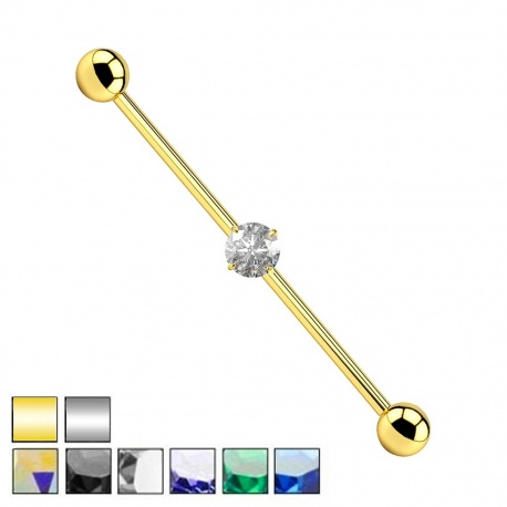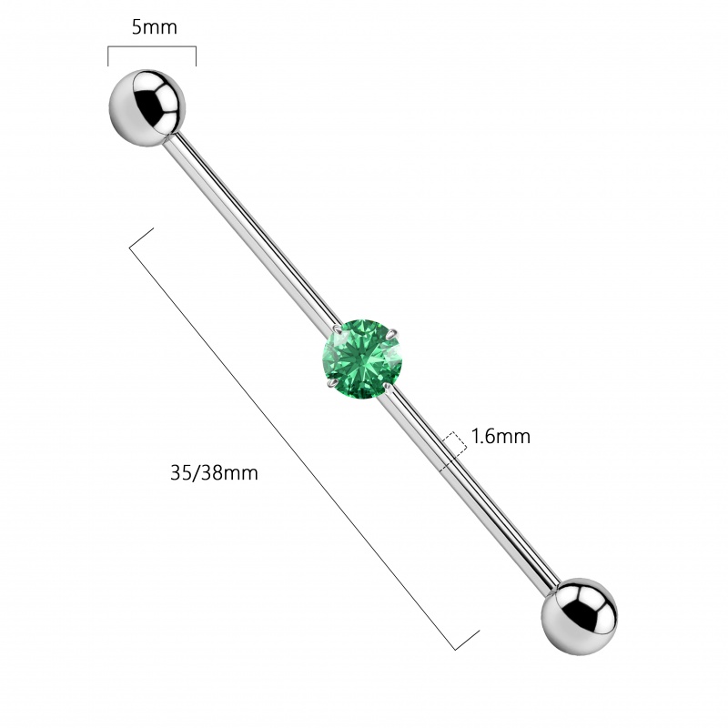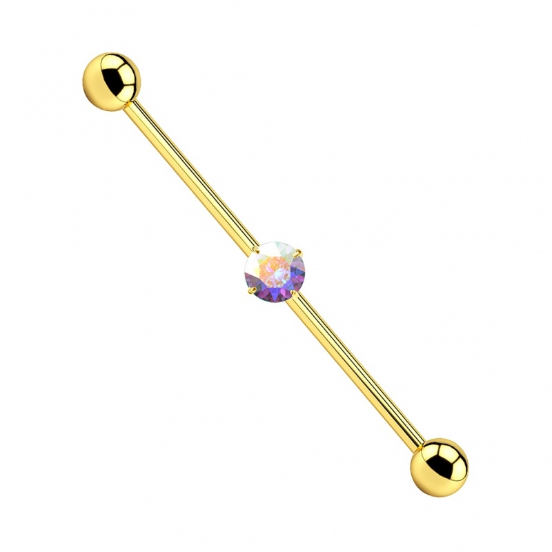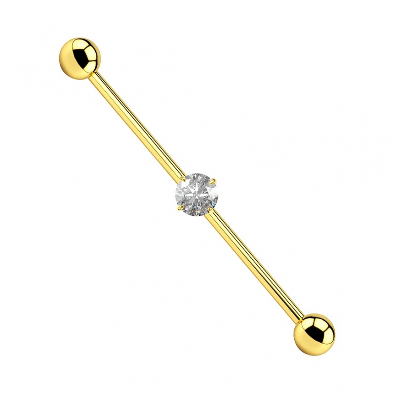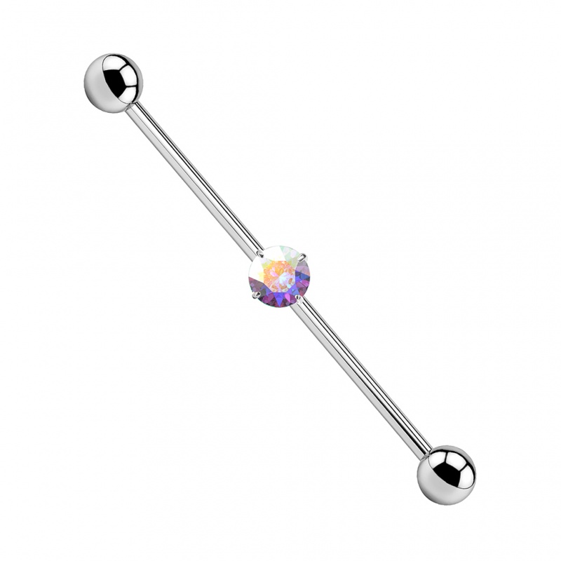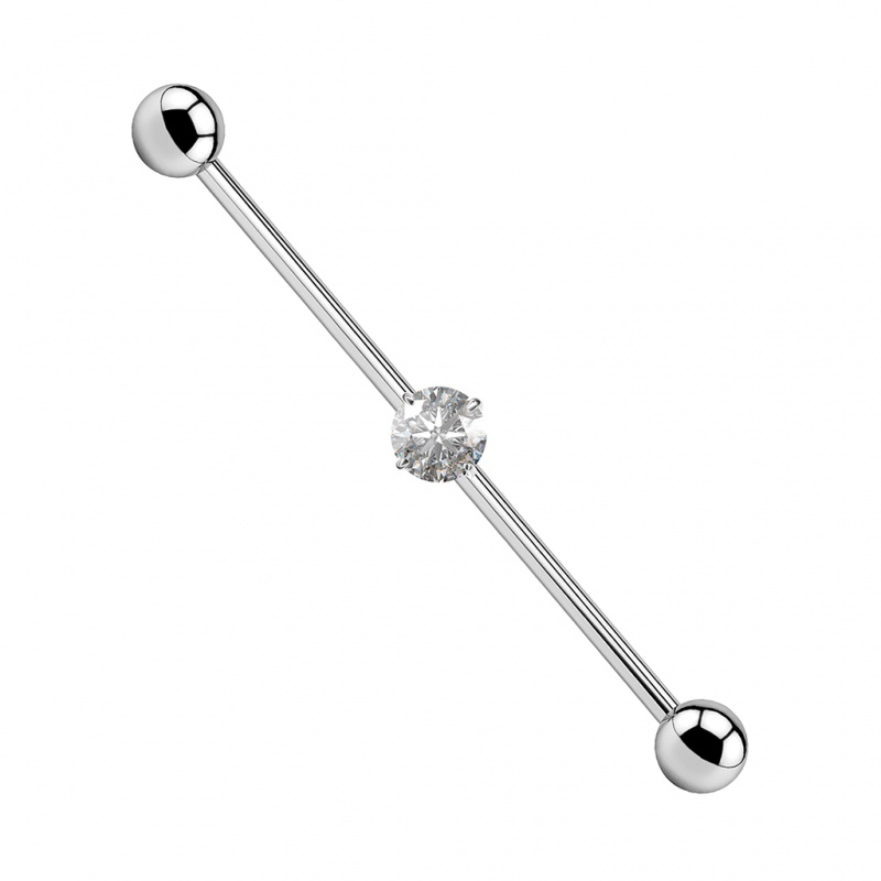 Ten industrial to kolczyk z kryształem do zadań specjalnych – ma wejść tam, gdzie zwykła biżuteria już nie daje efektu. Pręt wykonany jest z tytanu G23, cenionego za wysoką jakość i lekkość, dlatego może być stosowany także na świeże przekłucie. Srebrny wariant utrzymuje chłodny, minimalistyczny charakter, a złoty z powłoką PVD dodaje bardziej biżuteryjnego wykończenia i pomaga zachować intensywny kolor przy częstym noszeniu.