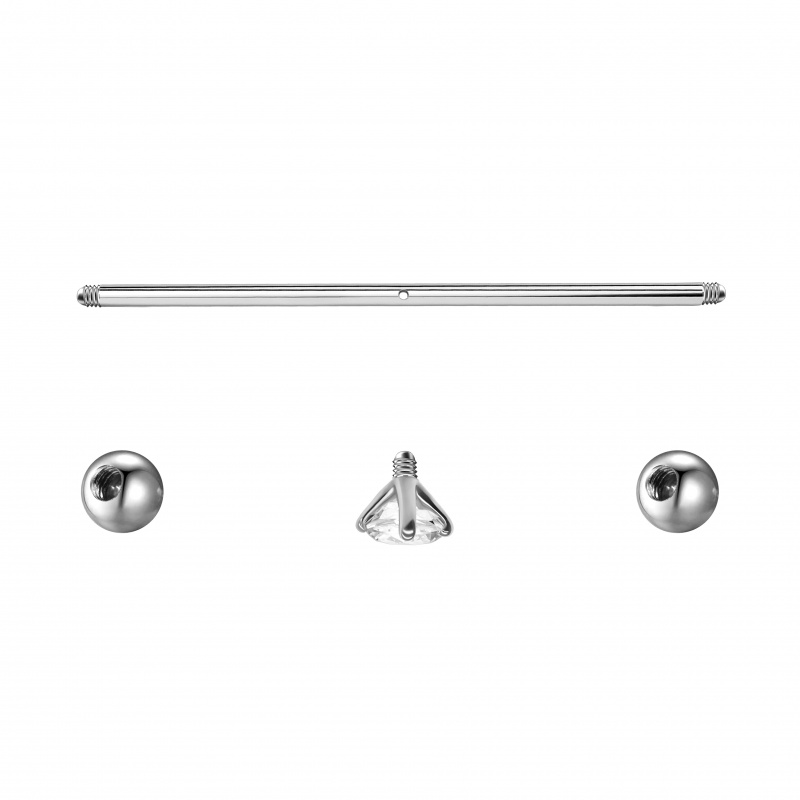 Sztanga posiada gwinty zewnętrzne na obu końcach oraz gwint wewnętrzny w centralnej części. Gwint na środku ma rozmiar 0,9 mm, dzięki czemu pasują do niego tytanowe nakrętki z naszej oferty – możesz traktować ten model jak bazę do własnych kombinacji. Odkręcany kryształek dostępny jest w kilku wariantach kolorystycznych: od jasnego, „czystego” błysku po ciemniejsze i intensywne odcienie; kolczyk z kryształem do zadań specjalnych bez problemu przejdzie z trybu „subtelny sygnał” w tryb „trudno oderwać wzrok”.